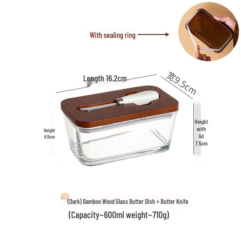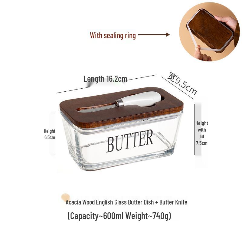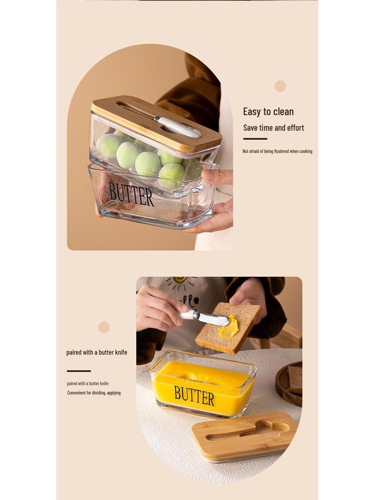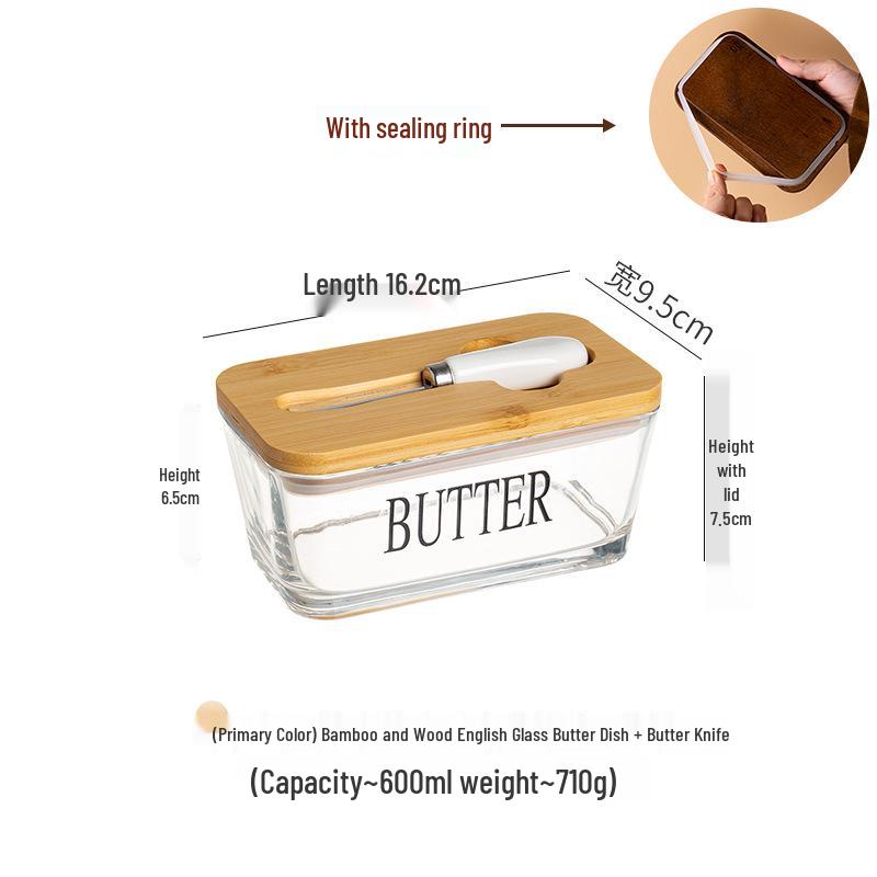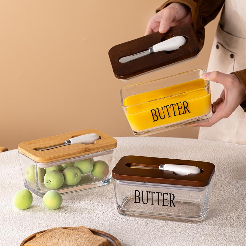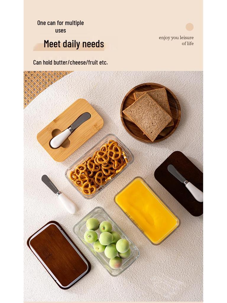 Прямоугольная стеклянная масленка с крышкой и лопаткой для хранения сыра