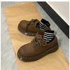 Версия из овчины~ Кожаные туфли Мартина с круглым носком цвета коричневый Crazy Horse, маленькие кожаные туфли, женские туфли на платформе-маффине, одинарные туфли