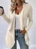 Кардиган рубчатой вязки однотонный Осень/Зима 2024 - Открытый спереди, Длинный рукав, Повседневный женский свитер