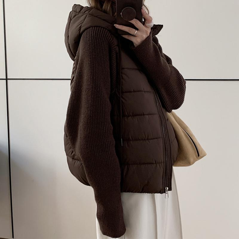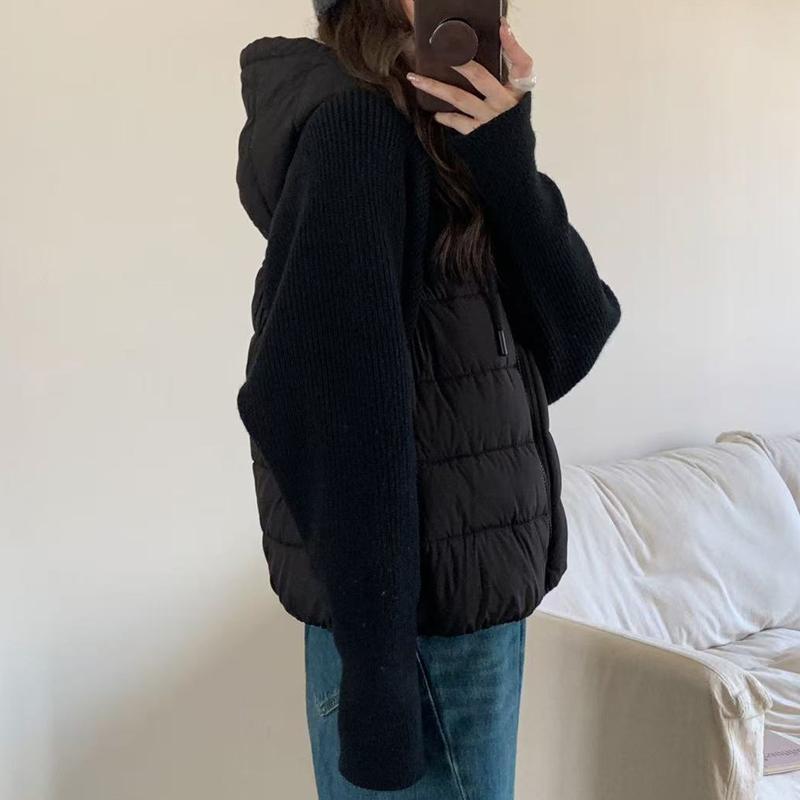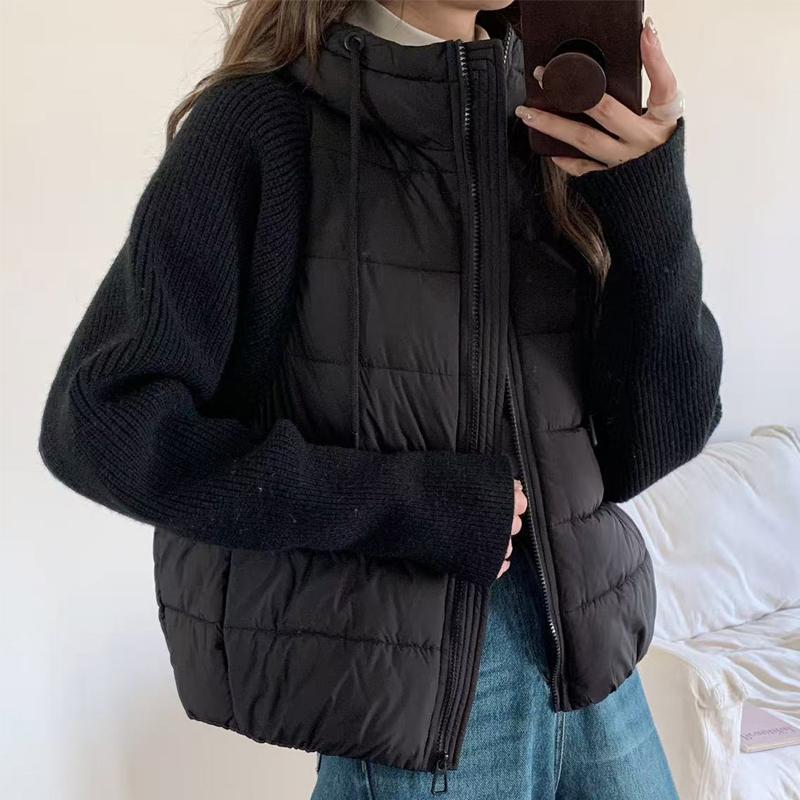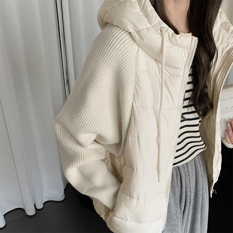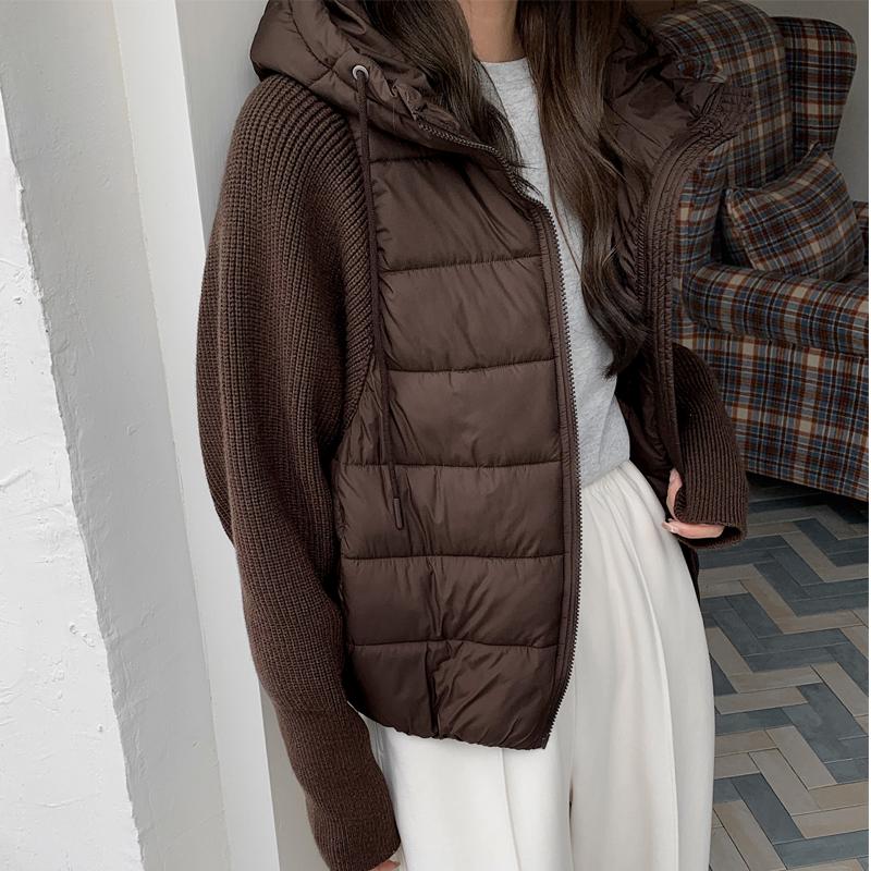 Модная женская короткая куртка Зимние куртки С капюшоном Вязаные рукава Свободная Толстая Теплая Женская парка