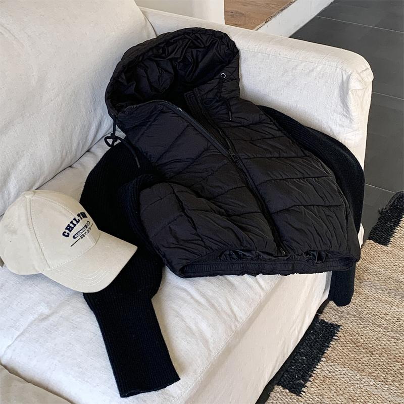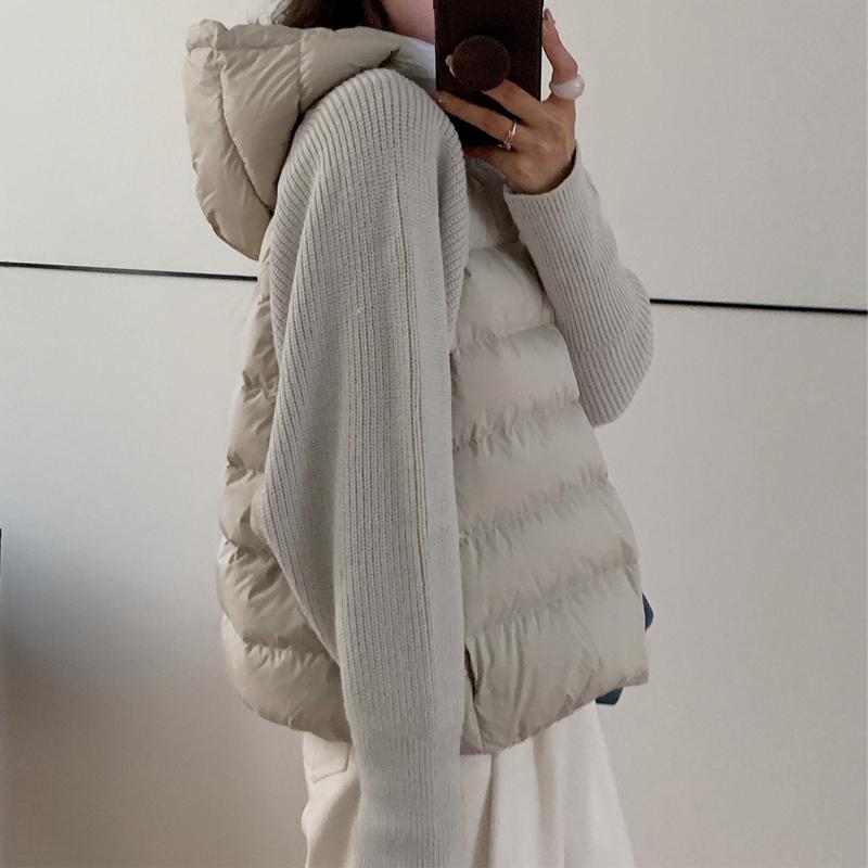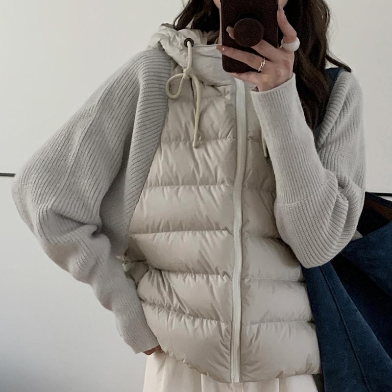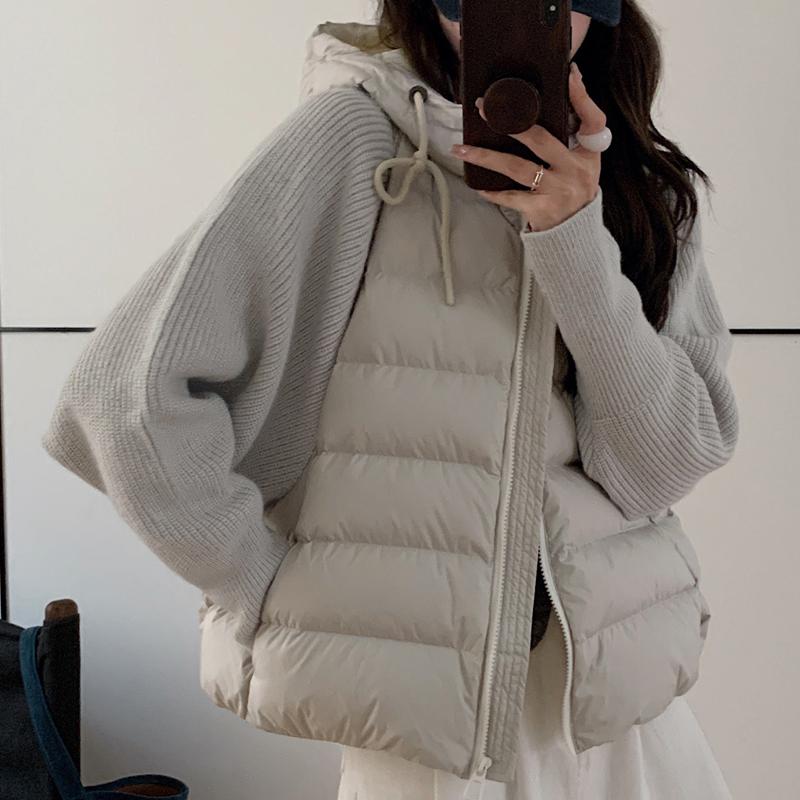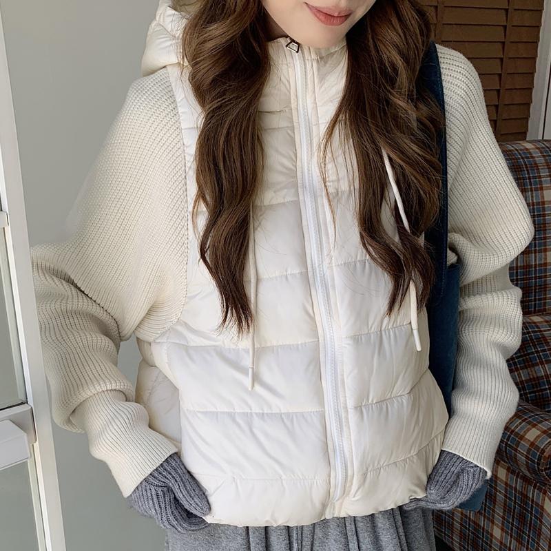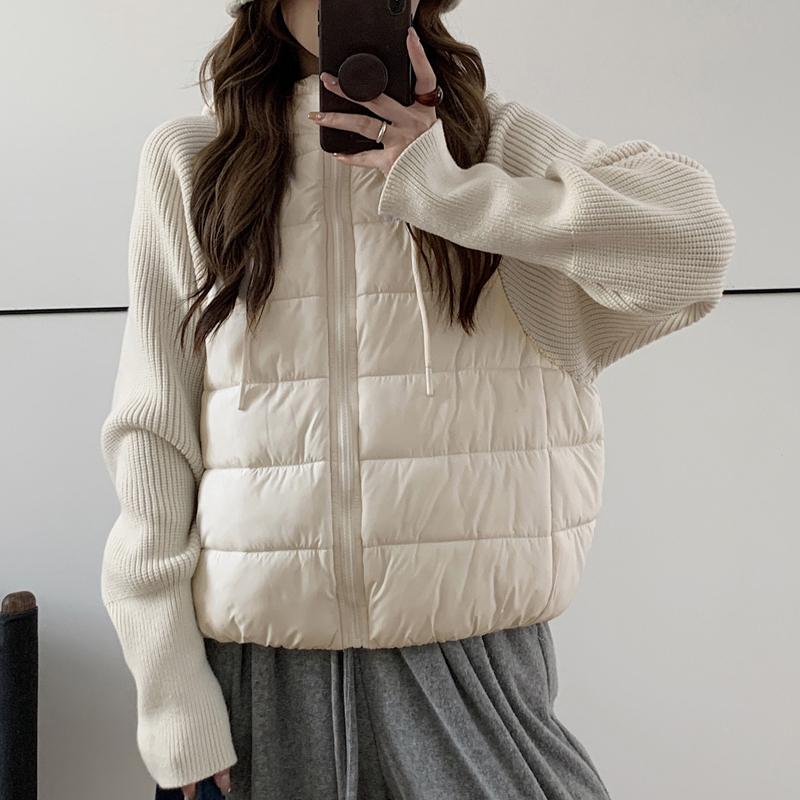 Модная женская короткая куртка Зимние куртки С капюшоном Вязаные рукава Свободная Толстая Теплая Женская парка