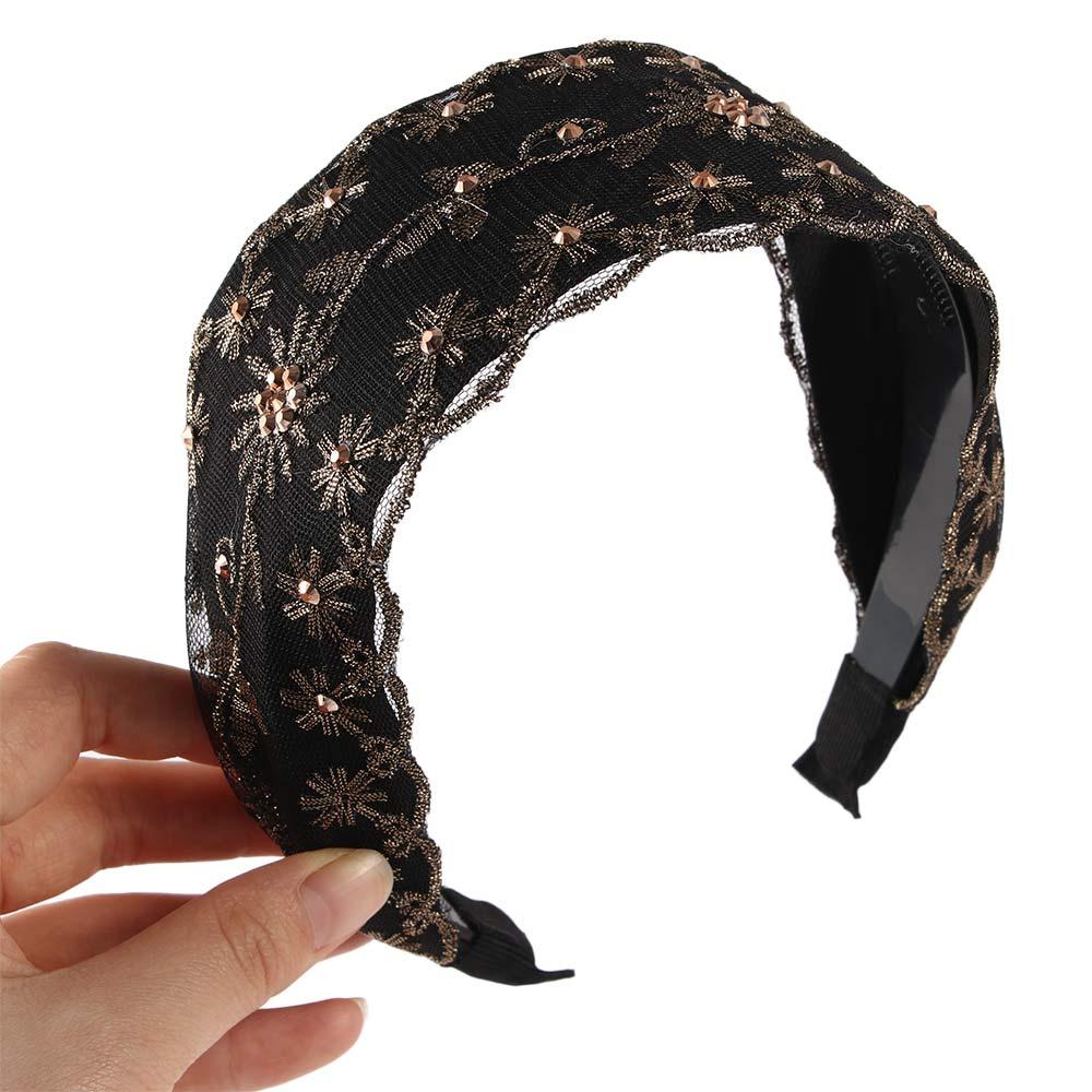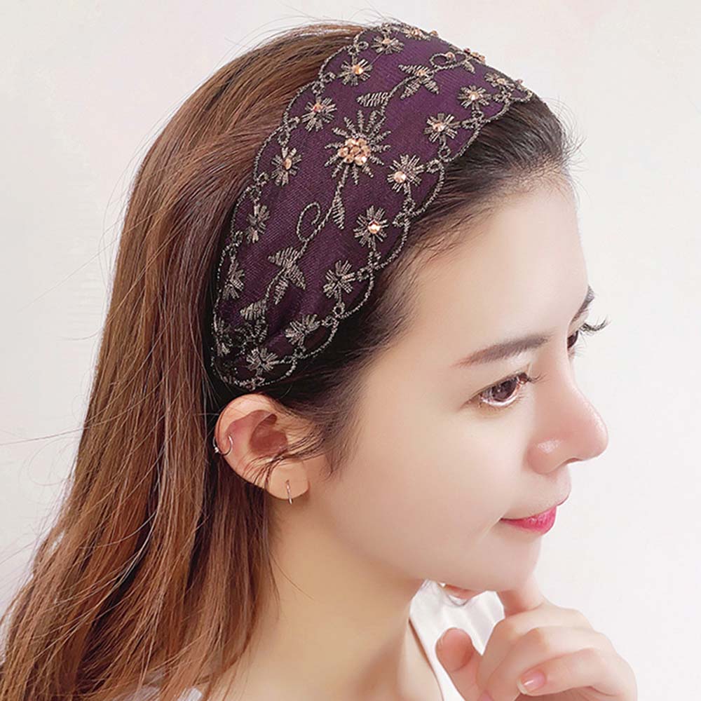 Темперамент Ретро Женский корейский стиль Кристалл Цветок головной убор Широкий ободок Вышивка повязка для волос