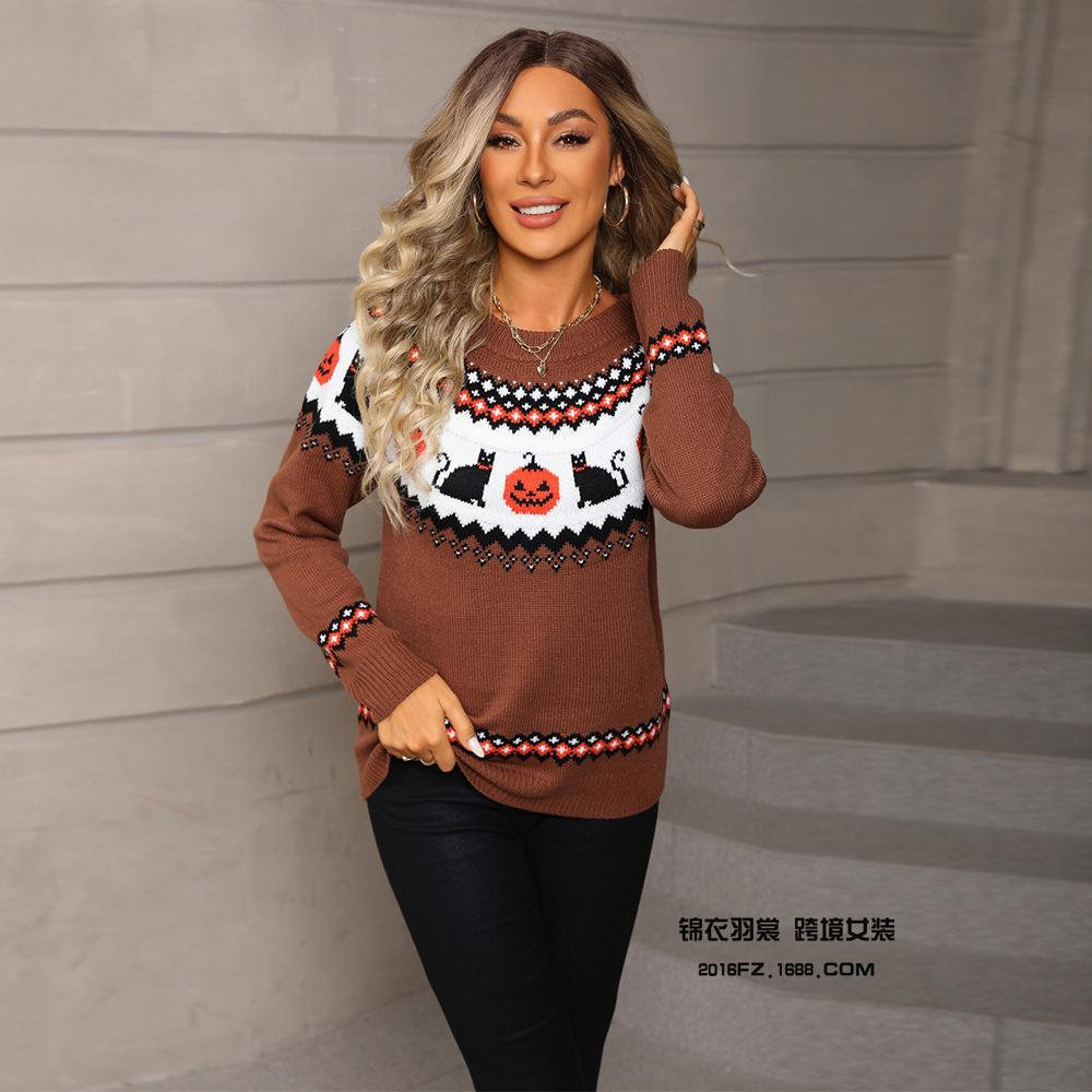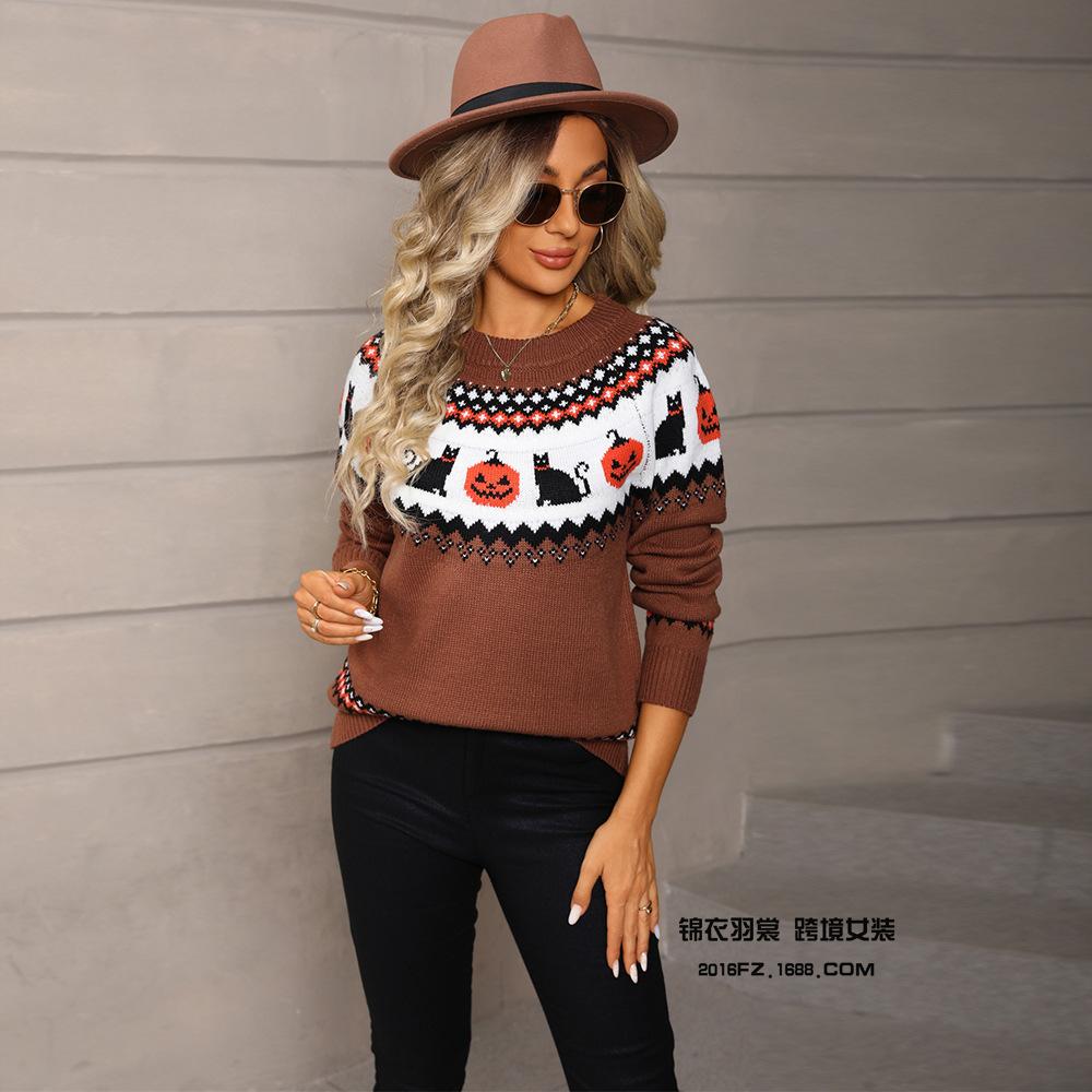 2025 Зимний Новый Продукт Вязаный Свитер Хэллоуин Личность Топ для Женщин Повседневный Универсальный Свободный Пуловер