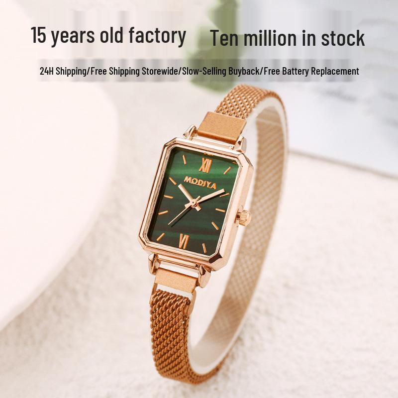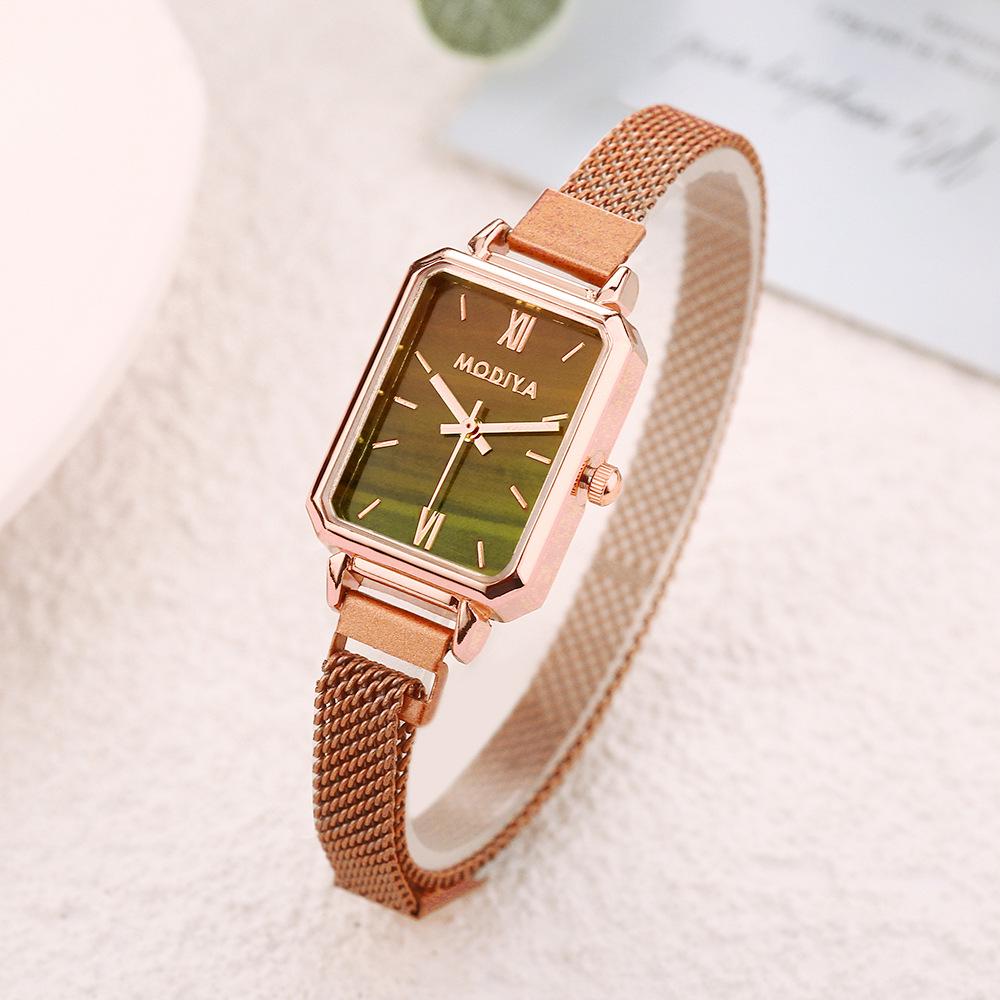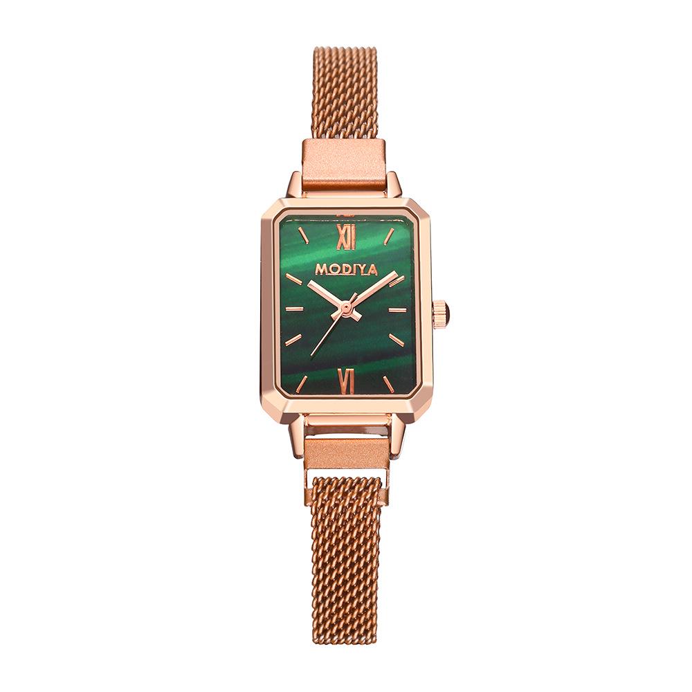 Маленькие квадратные часы цвета павлиньего зеленого в стиле мори-гёрл с миланским браслетом и зеленым циферблатом для женщин