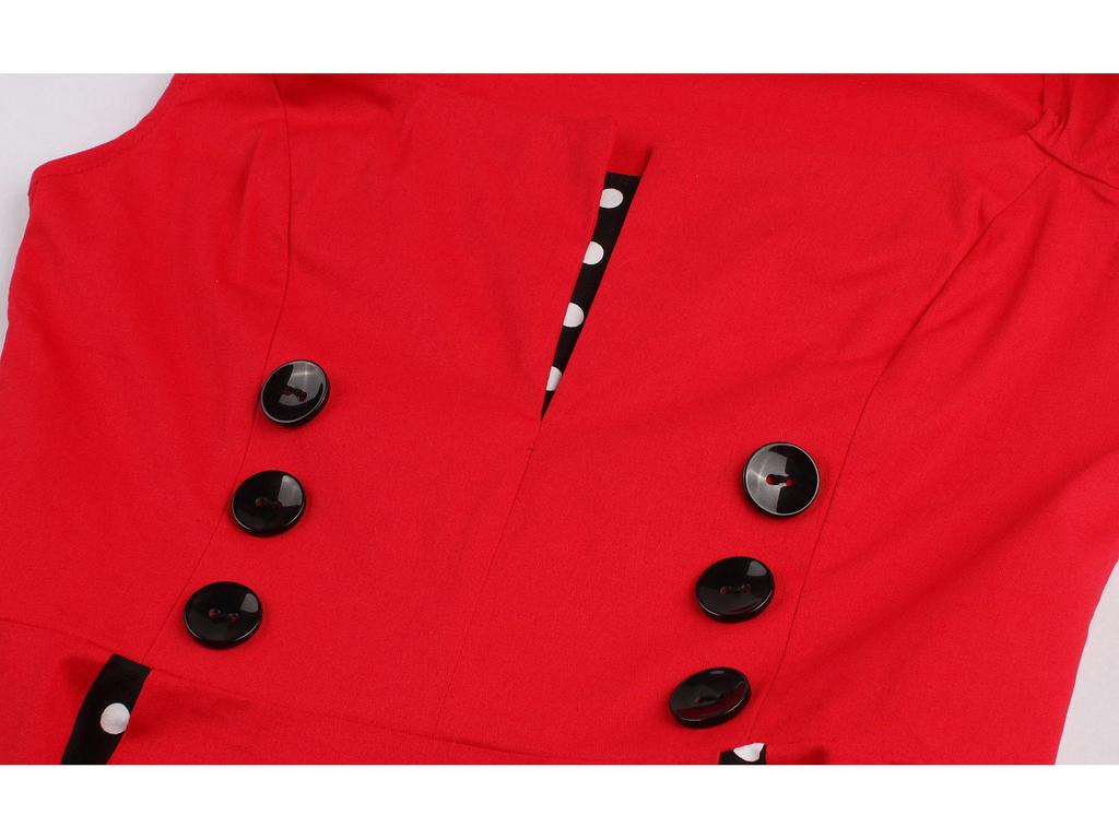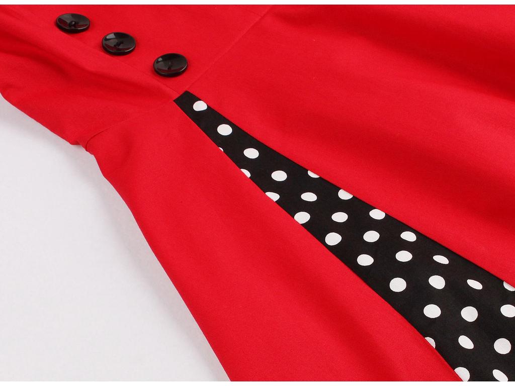 Это элегантное платье в стиле свинга 1950-х годов создано, чтобы передать суть ретро-готической моды.. Изготовлено из высококачественного хлопкового материала, имеет яркий красный горошек, который подчеркивает его классический силуэт.. Платье имеет лестный силуэт «фит-энд-флейр», идеально подходящий для того, чтобы передать винтажный шарм с современным акцентом.. Удобный и стильный, это идеальный выбор для тех, кто хочет сделать смелое заявление на любом мероприятии.