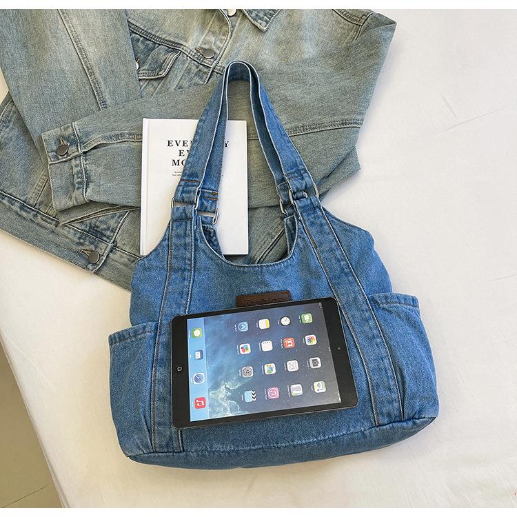 Женская повседневная джинсовая сумка-тоут большой вместимости в японском стиле