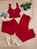 Популярный женский кружевной пижамный комплект: Комплект из трех предметов: шорты, длинные брюки и майка – Сексуальная домашняя одежда