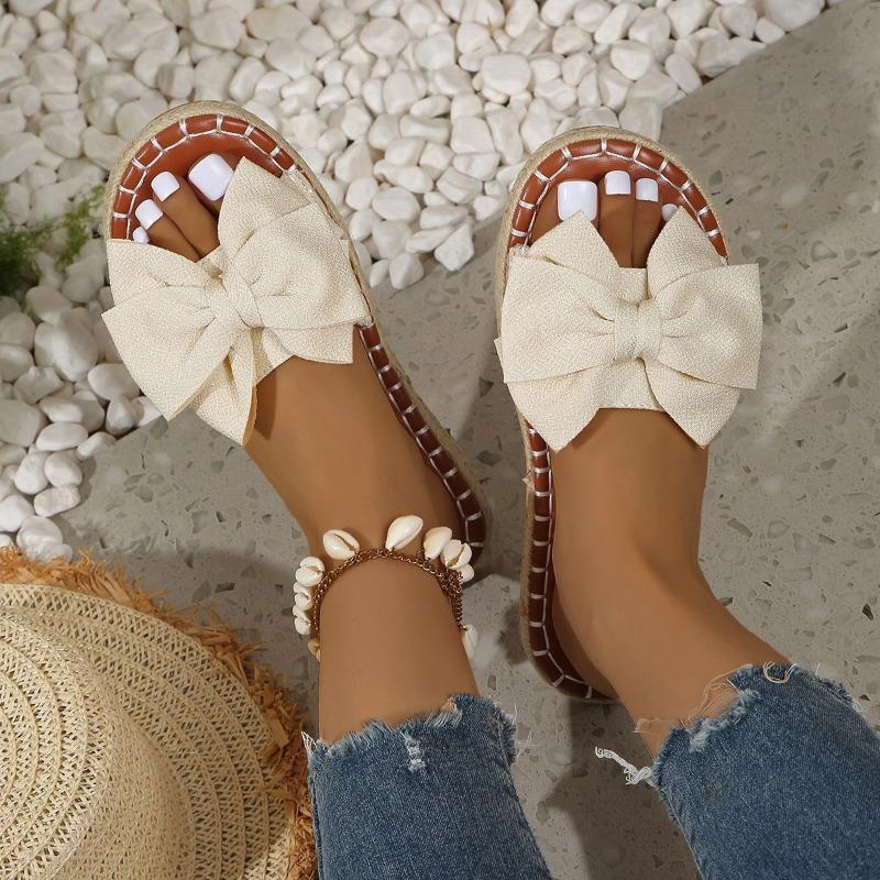 Однословные тапочки женские с бантом на плоской подошве летние новые сандалии модная обувь сандалии полутапочки женские