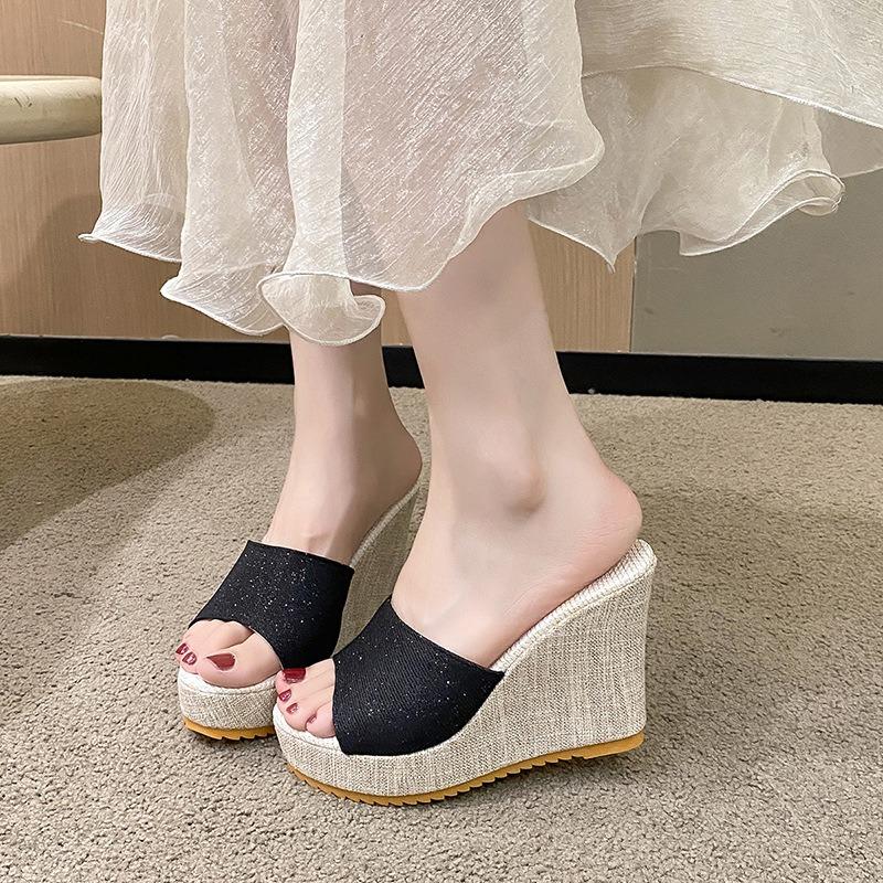 Тапочки на танкетке с открытым носком большого размера, летние новые, на толстой подошве, увеличивающие рост, тканевый верх, прохладные тапочки для женщин — купить товар онлайн с бесплатной доставкой по всему миру!