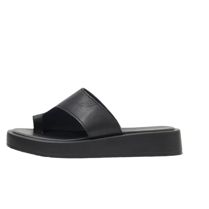 Пляжная обувь летняя большого размера уличные тапочки однотонные с закрытым носком на толстой подошве сандалии с круглым носком