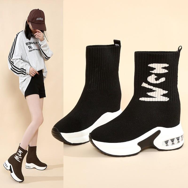 Большого размера тонкие ботинки для женской осени и зимы, новые, из мухоткани, высокие, эластичные, на толстой подошве-маффине, женские короткие ботинки на одной педали — купить товар онлайн с бесплатной доставкой по всему миру!