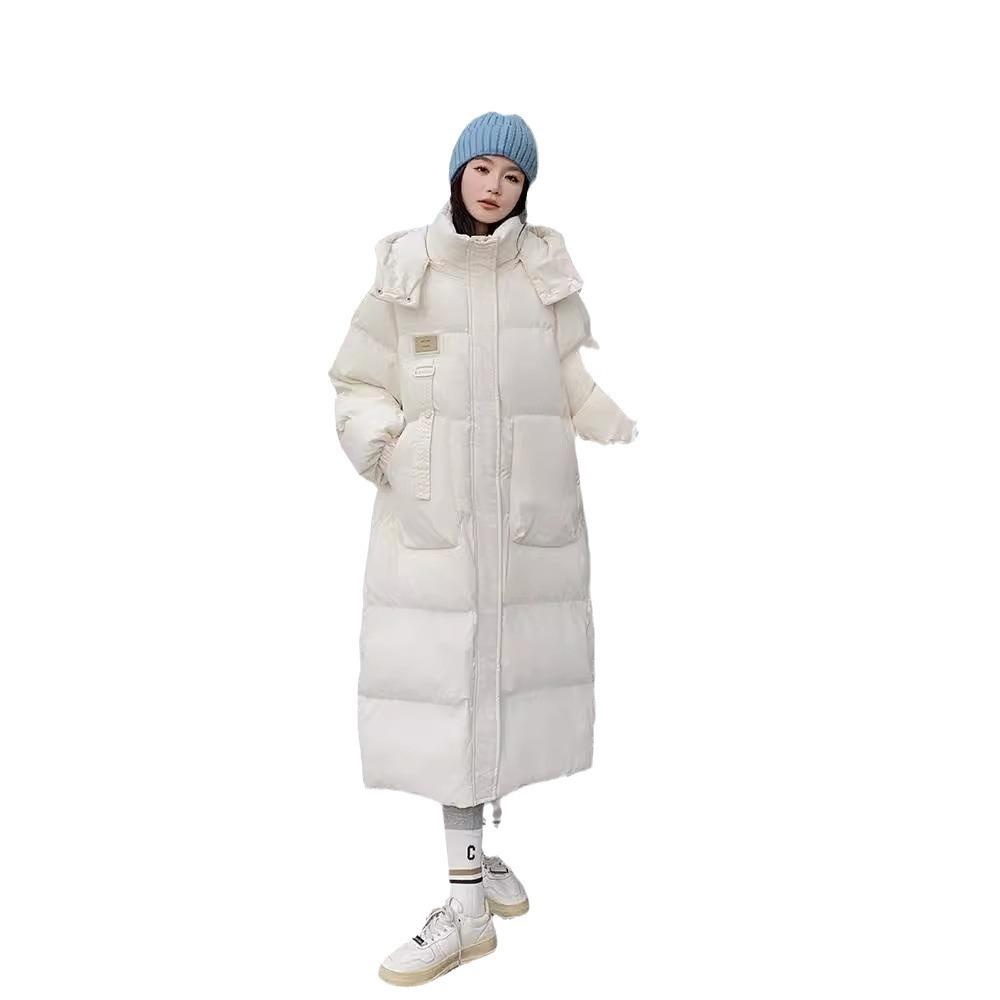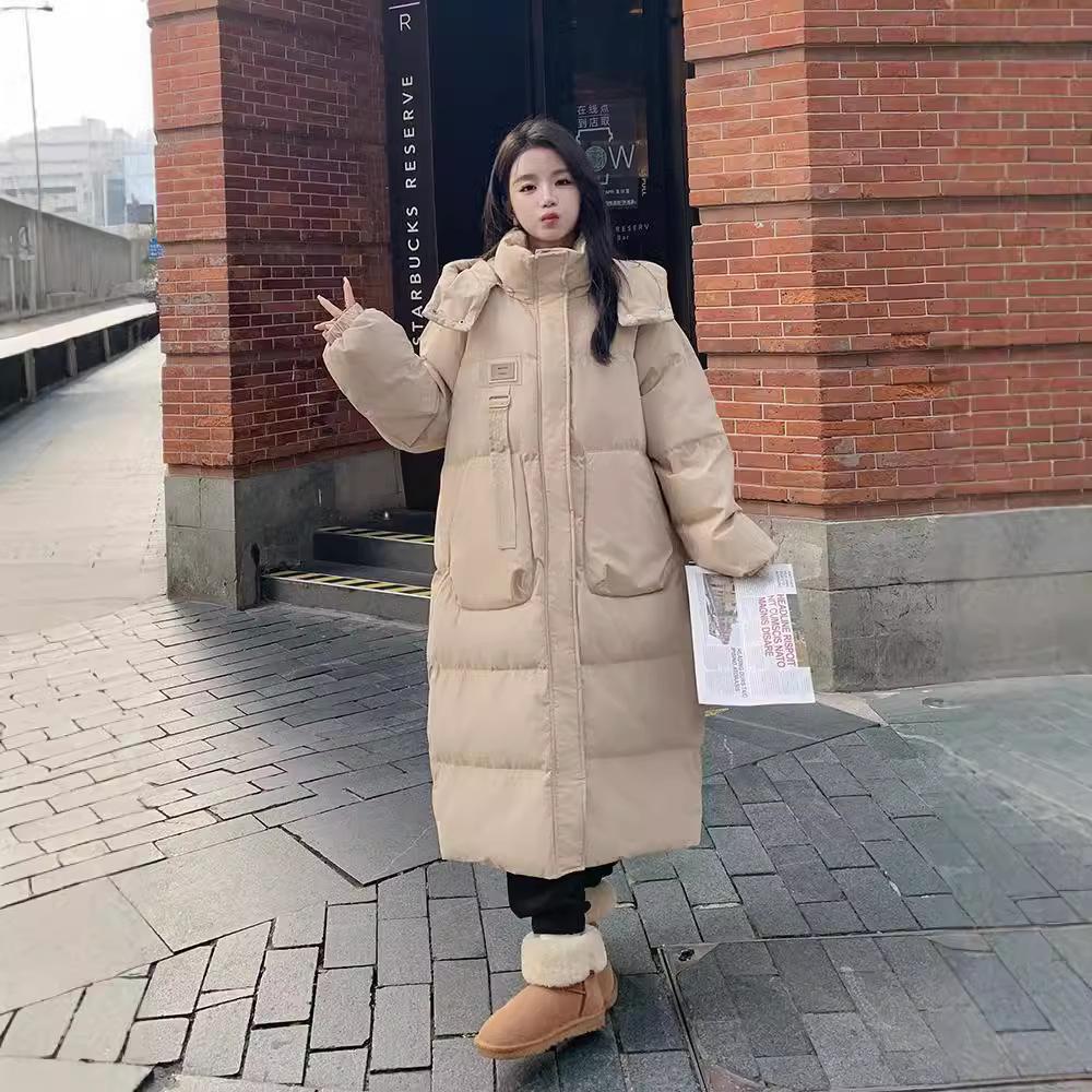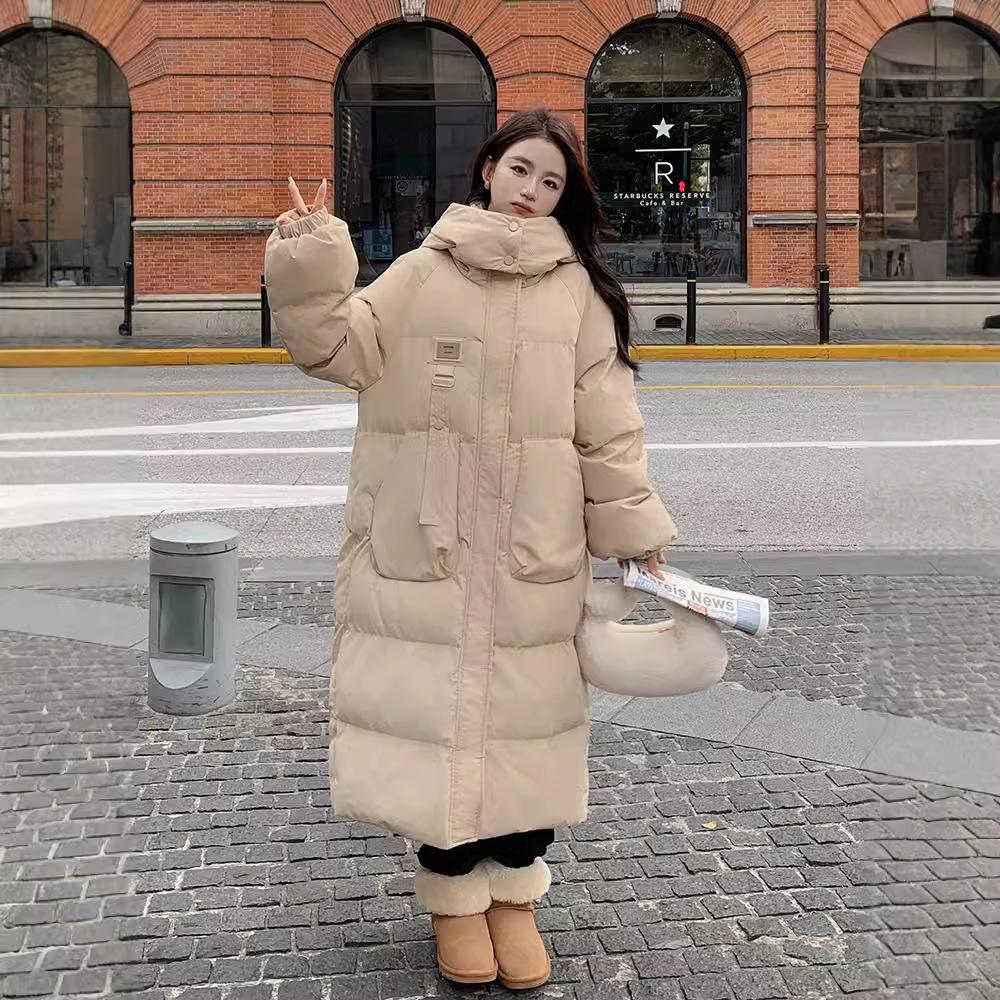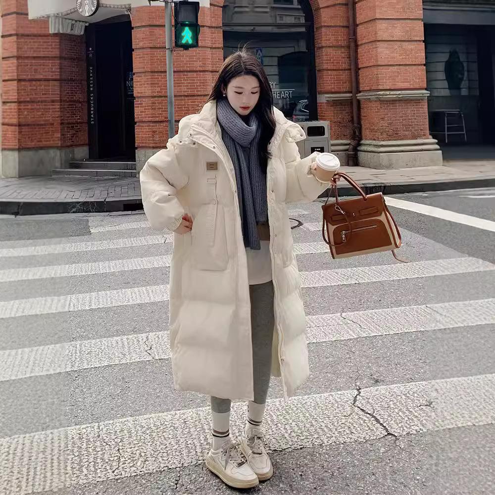 Пуховик женский средней длины зимний 2025 новый корейский стиль куртка на хлопковой подкладке утолщенный выше колена с капюшоном куртка на хлопковой подкладке