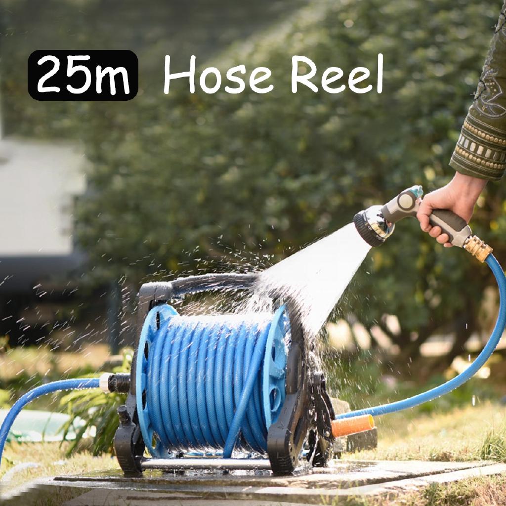 Садовый переносной держатель для катушки для воды 25 м Катушка для шланга Поливной шланг Зажим для трубы для бытового ирригационного инструмента и мойки автомобиля синий