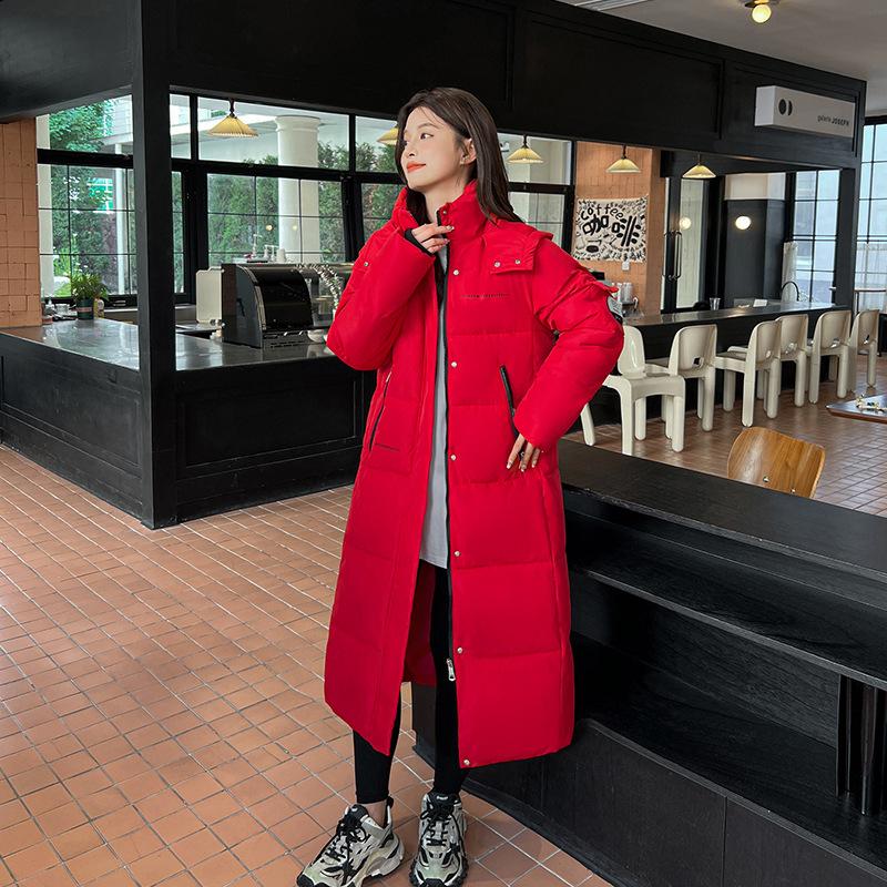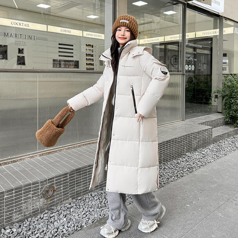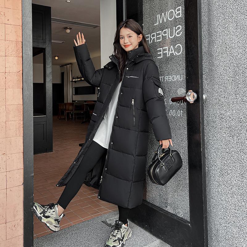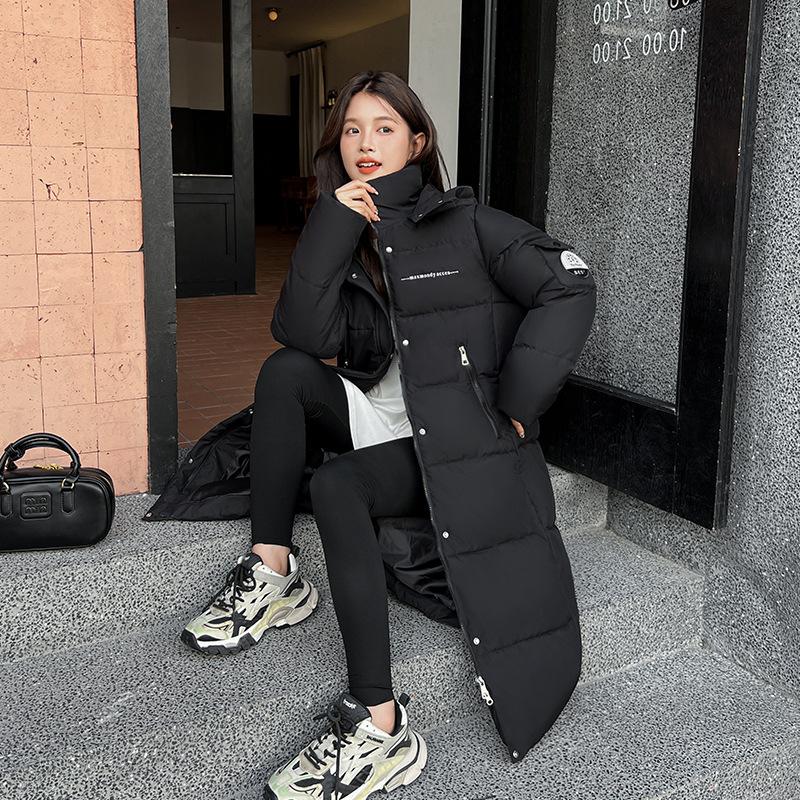 Женская пуховая куртка новая 2025 утолщенная и теплая корейская версия свободная длинная ниже колена хлопковая куртка зимняя стеганая куртка