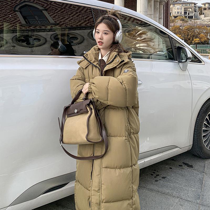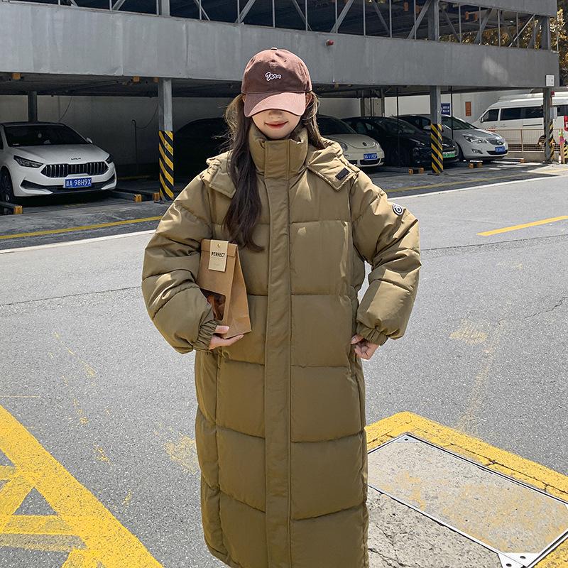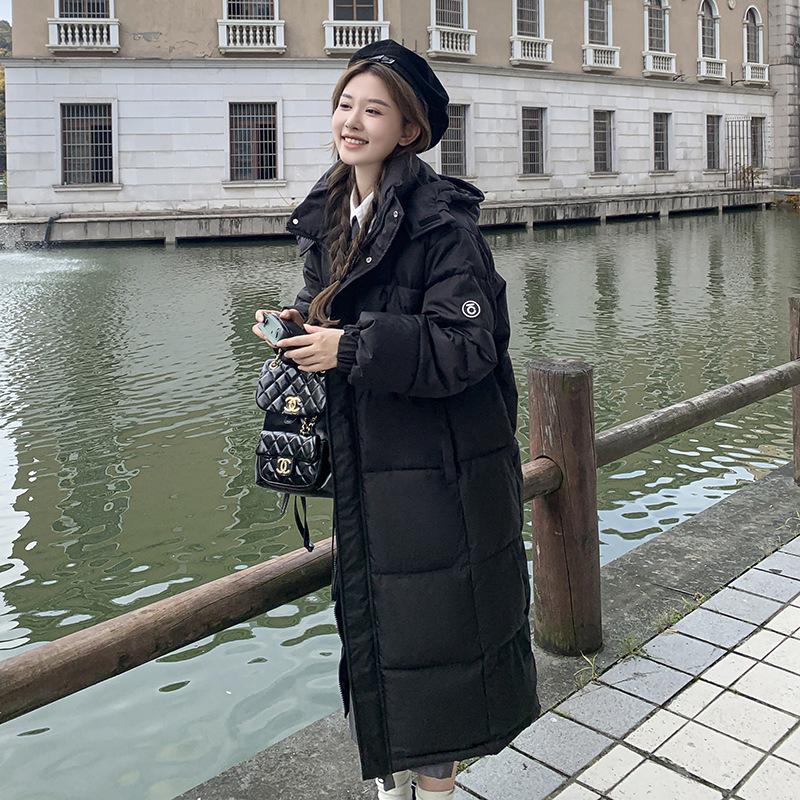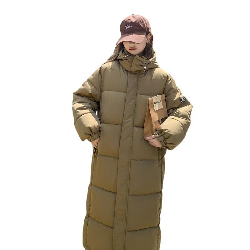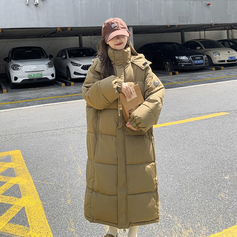 Зима 2025 новая длинная хлопковая куртка ниже колена корейская версия свободного студенческого стиля пуховик с наполнителем утолщенная куртка