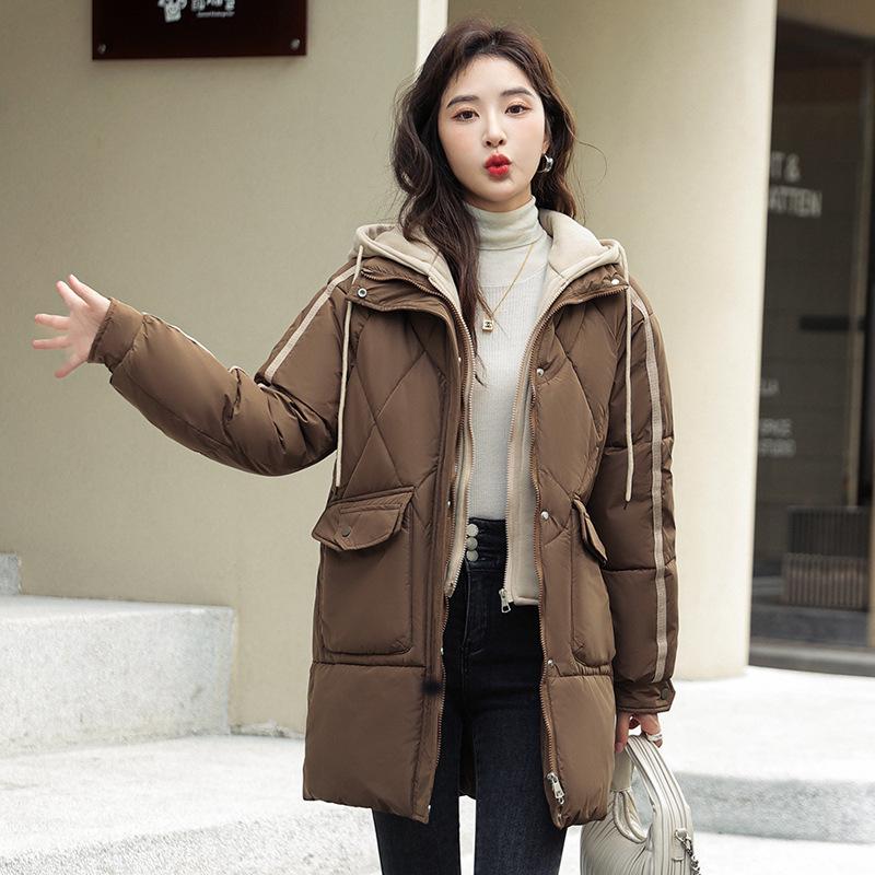 Корейская версия повседневной утолщенной хлопковой куртки женская зима 2025 новая с капюшоном школьница средней длины свободная хлопковая куртка