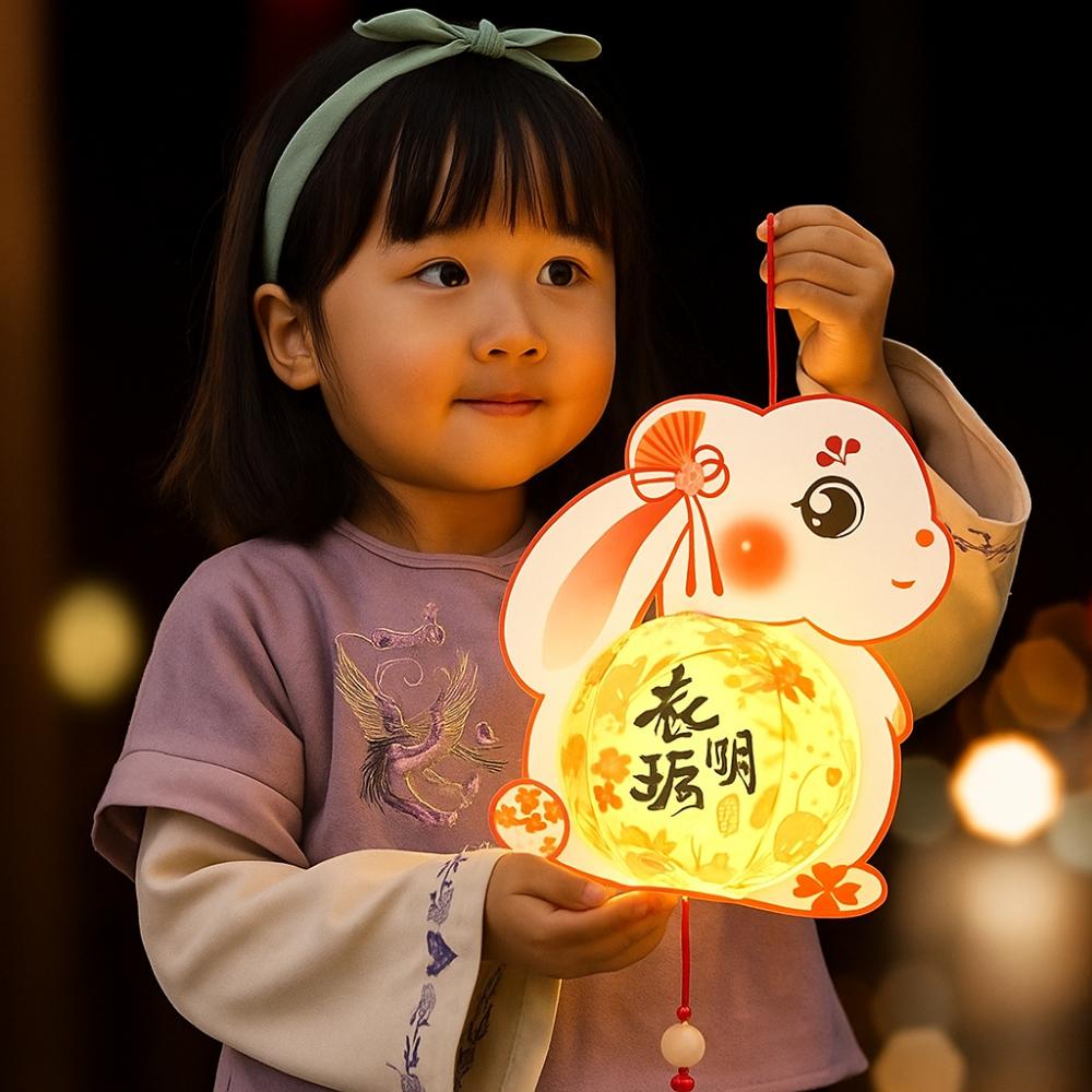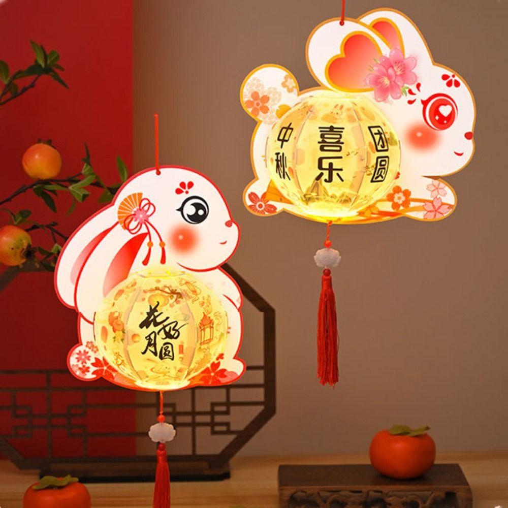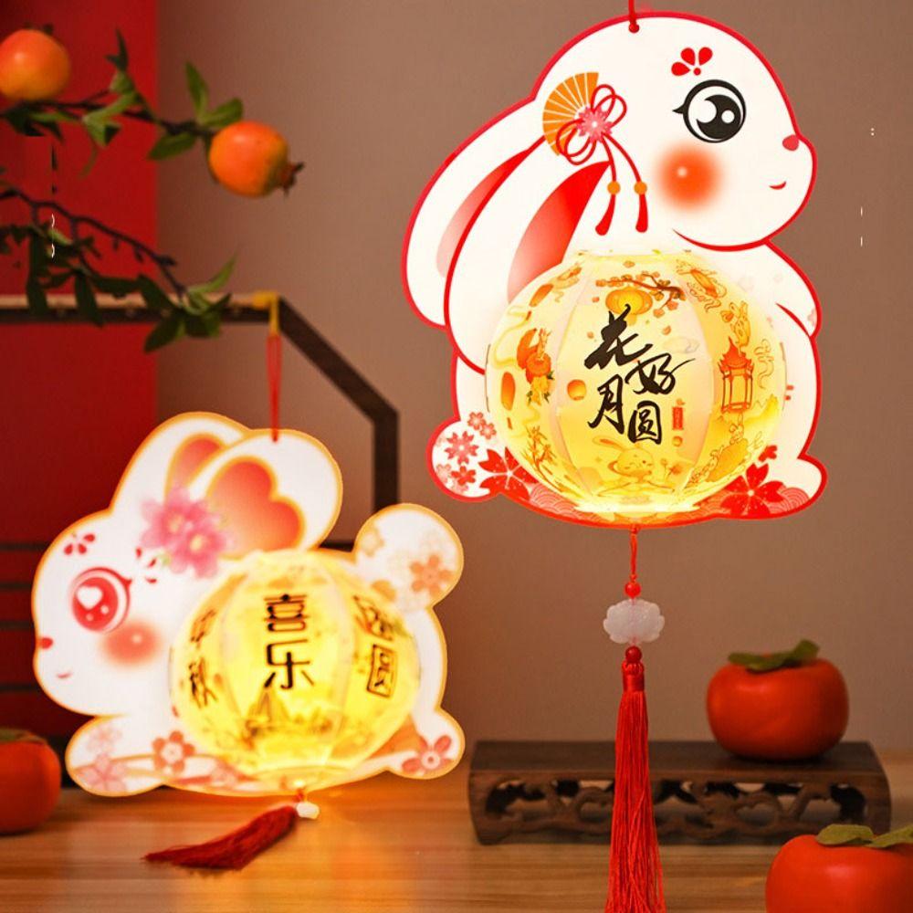 Hanging Rabbit Lanterns Glowing Lantern DIY Material Package Cute Mid-Autumn Festival Lantern Kids