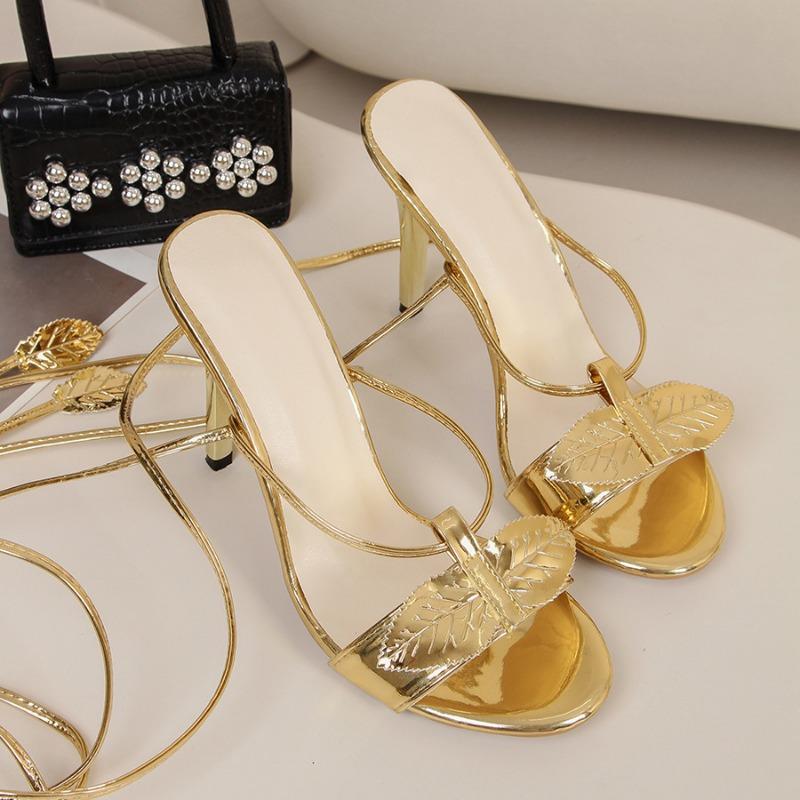 Женская обувь босоножки на высоком каблуке золотистые с острым носком на шпильке с открытым носком с перекрестными ремешками сандалии больших размеров