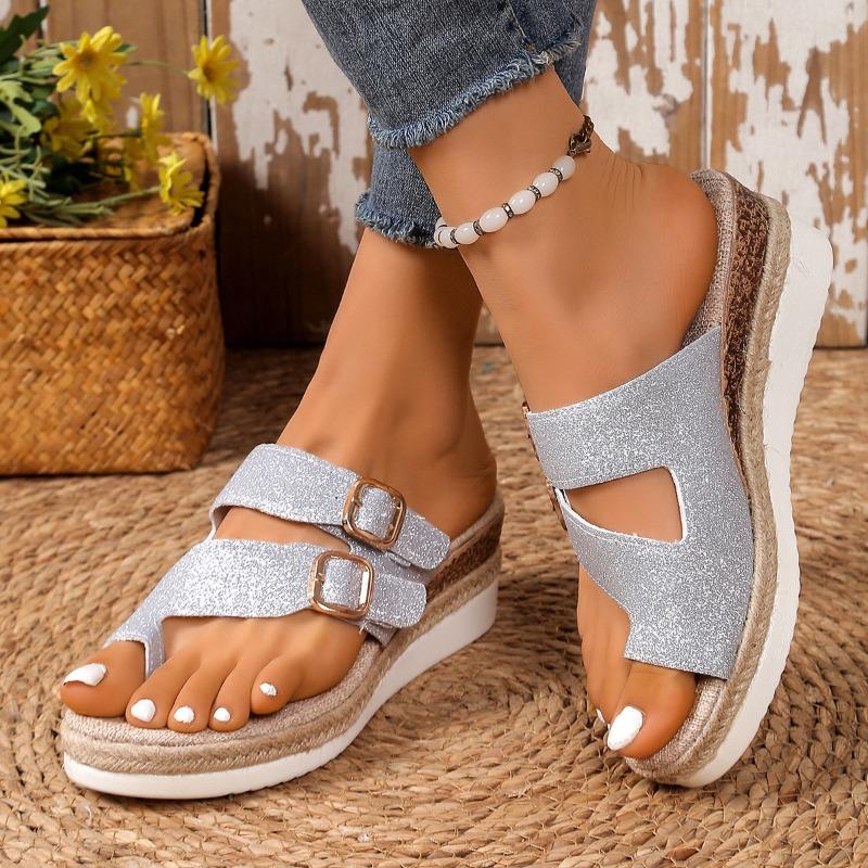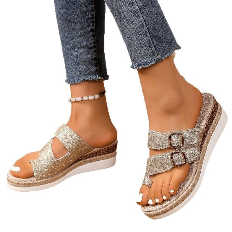 Женские сандалии на танкетке большого размера, полушлепки для улицы, весна и лето, новые, с ремешком и пряжкой, с полым носком