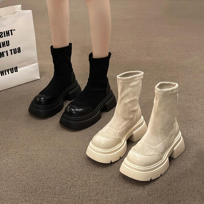 Платформенные короткие ботинки женские 2025 новые осенние эластичные тонкие ботинки ботинки в британском стиле ботинки Мартина уличный стиль черные одинарные ботинки