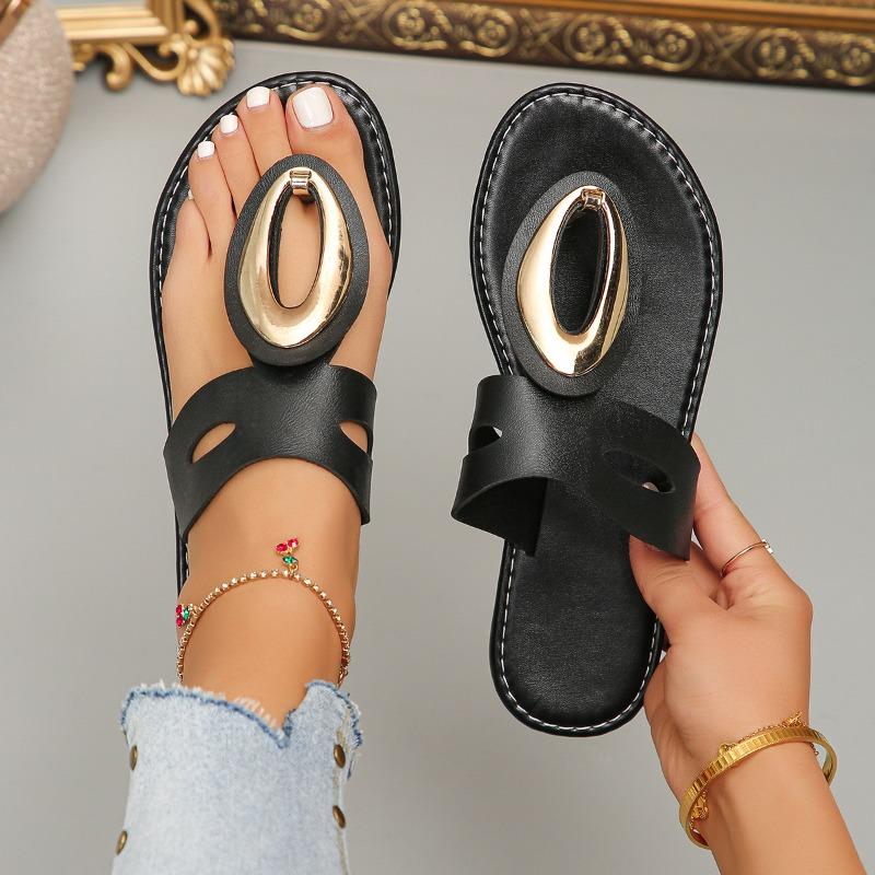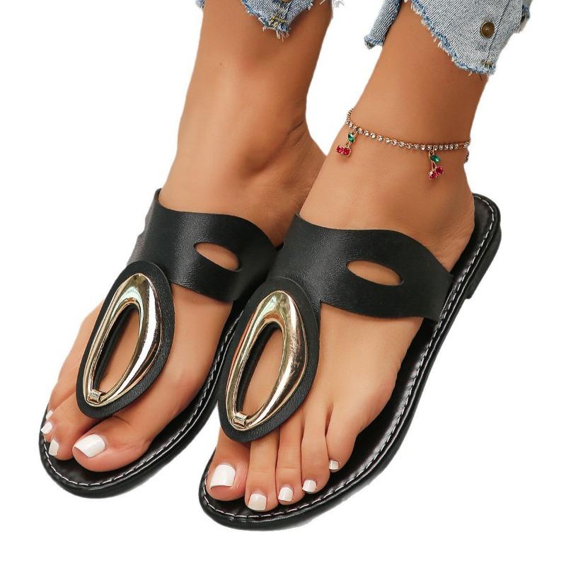Летние шлепанцы большого размера, новая модная повседневная обувь с металлической пряжкой на носке, женские