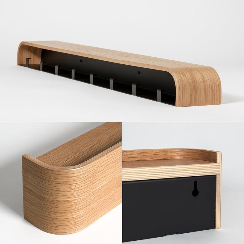 Настенная вешалка для одежды, Вешалка для одежды современного дизайна со скрытыми настенными крючками - Панель из шпона массива дерева, Вешалка для одежды Орех, 1 шт.