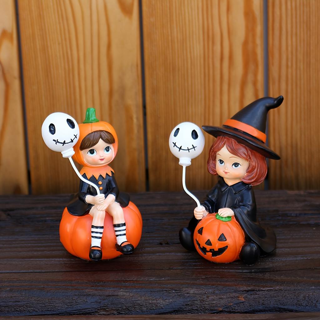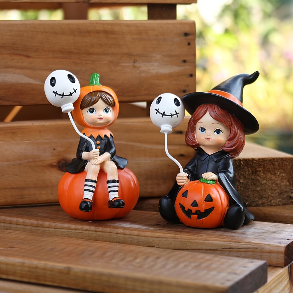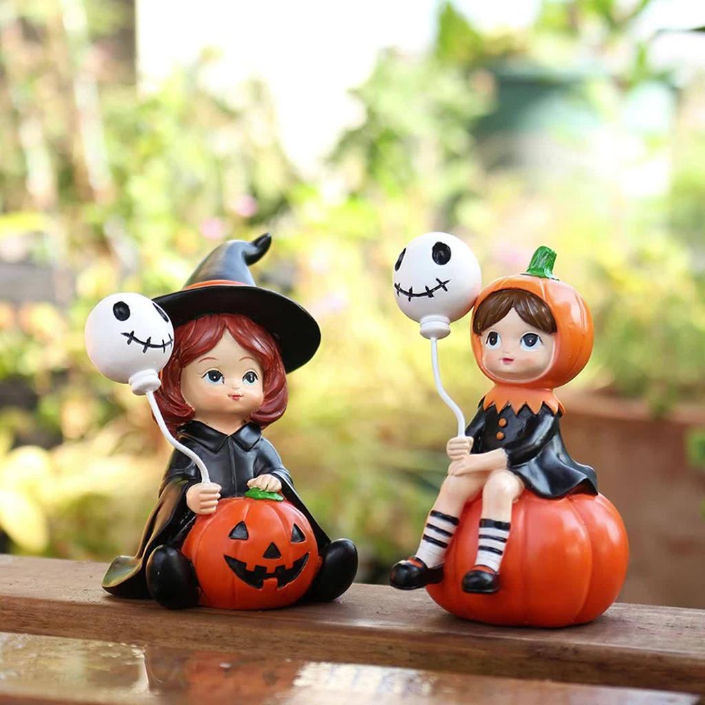 2 шт. Хэллоуин Тыква Ведьма Сестра Фигурки с Шарами, Смола Ручная Тыква Ведьма Девочка Статуэтка для Дома Обеденный Стол, Декор Книжной Полки