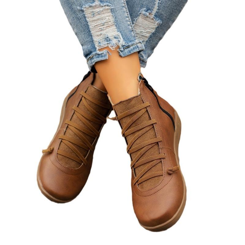 Модные ботинки Мартина большого размера осень-зима новые с круглым носком на шнуровке с коротким голенищем на плоском каблуке женские ботинки