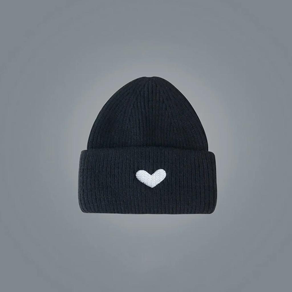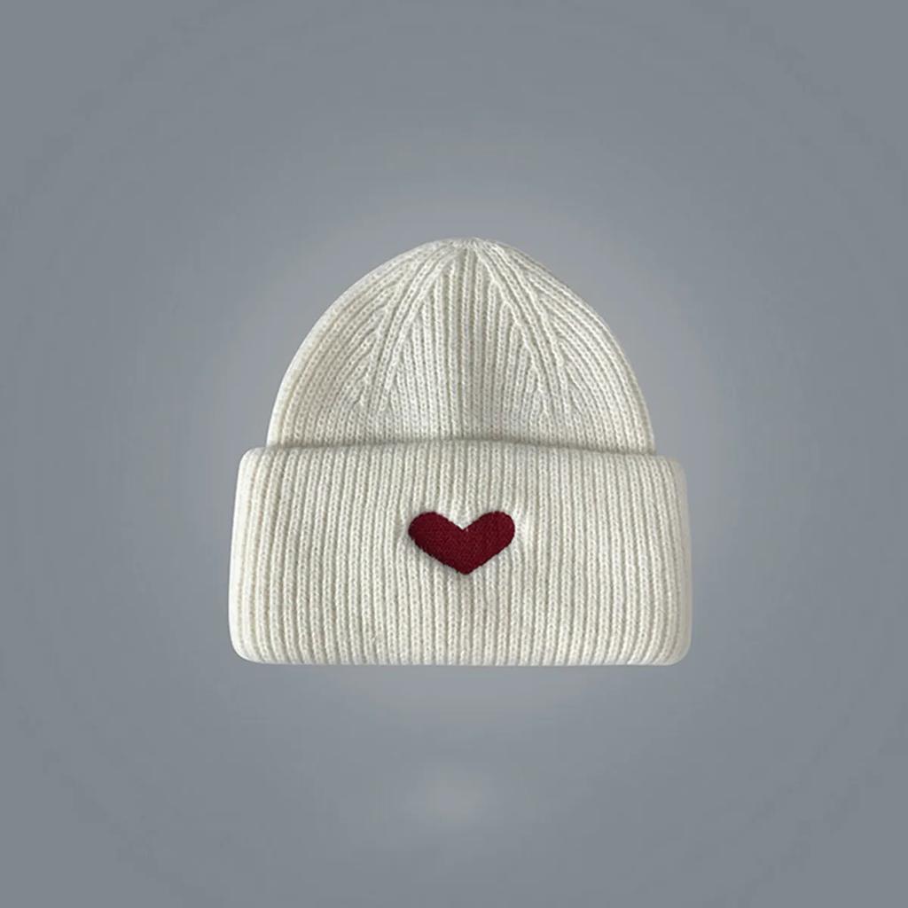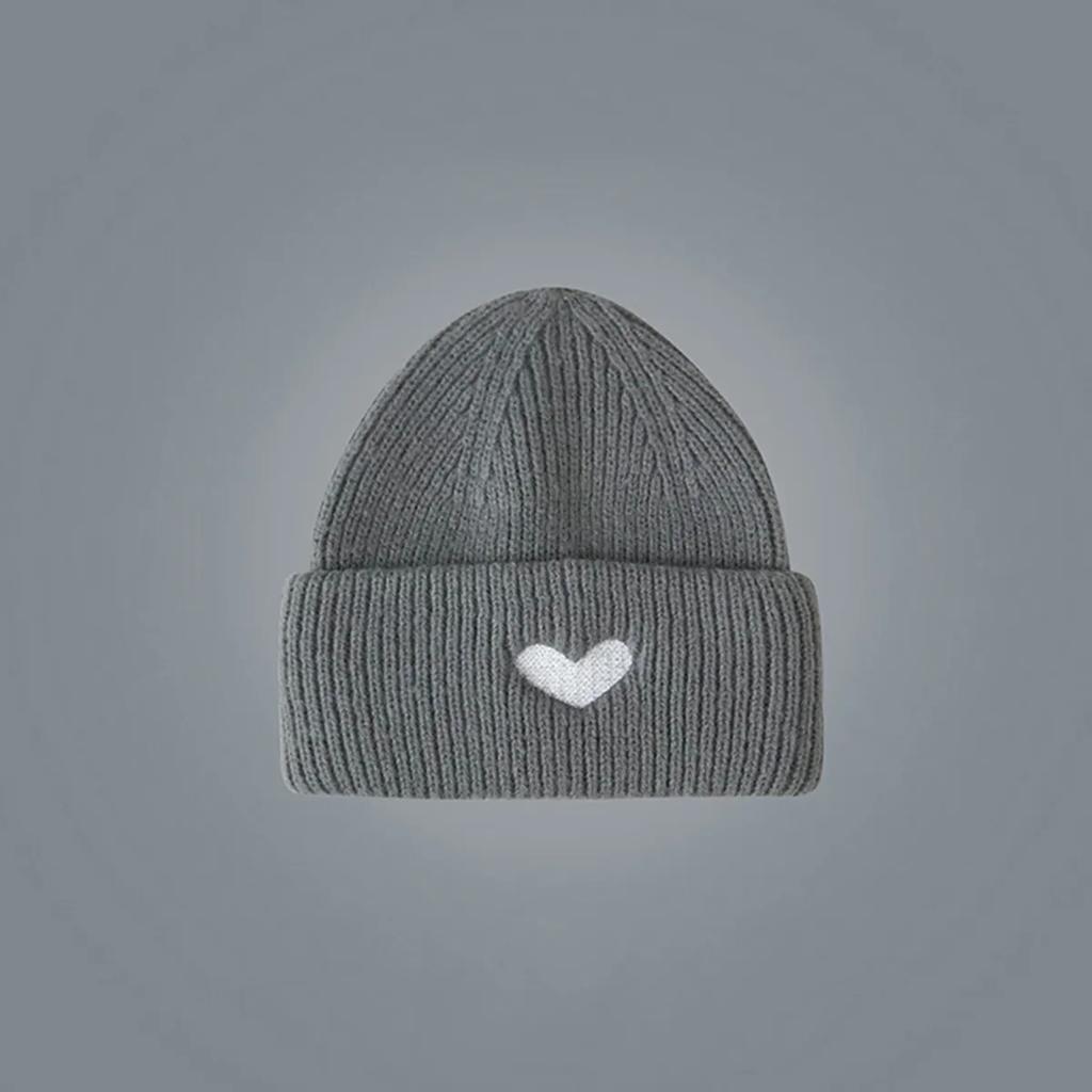 Натуральная шапка бини NewKnit: Уютная вязаная шапка с вышивкой в виде сердца - теплая зимняя шапка для женщин и девочек