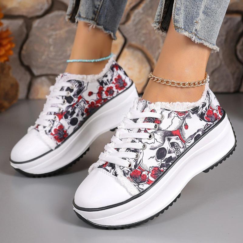 Кеды холщовые повседневные на платформе большого размера с граффити, новые весенне-осенние, низкие, на шнуровке, женские