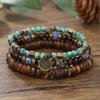 Многослойный набор браслетов, Ретро мужской браслет из африканской бирюзы и деревянных бусин.