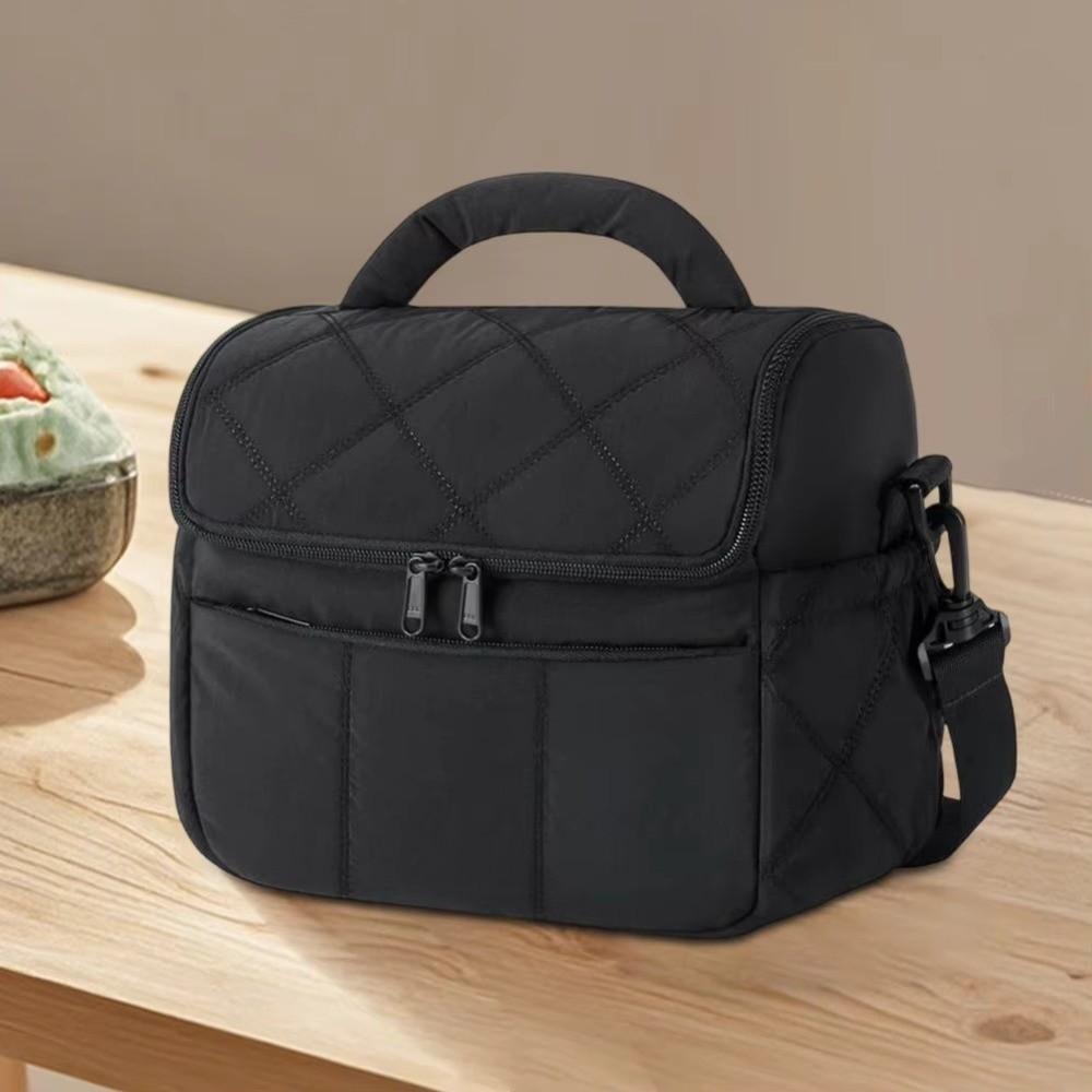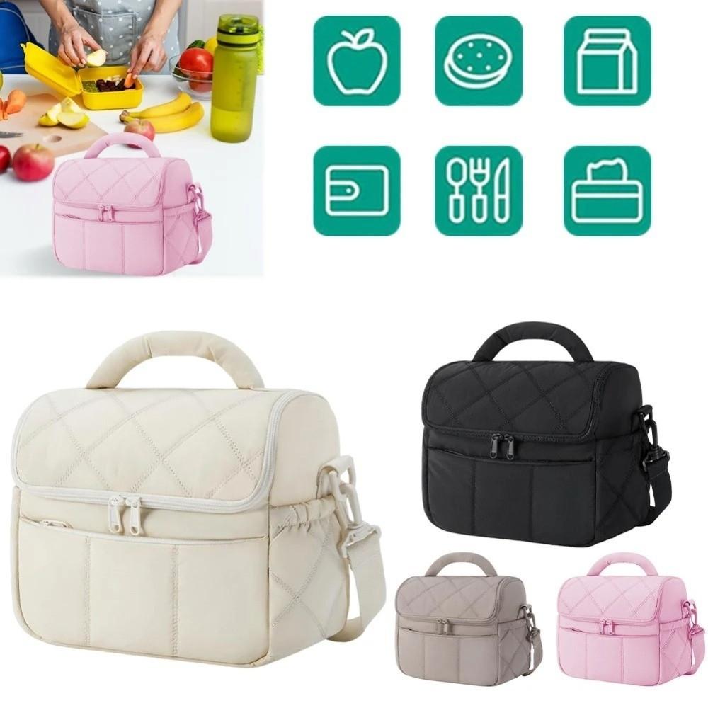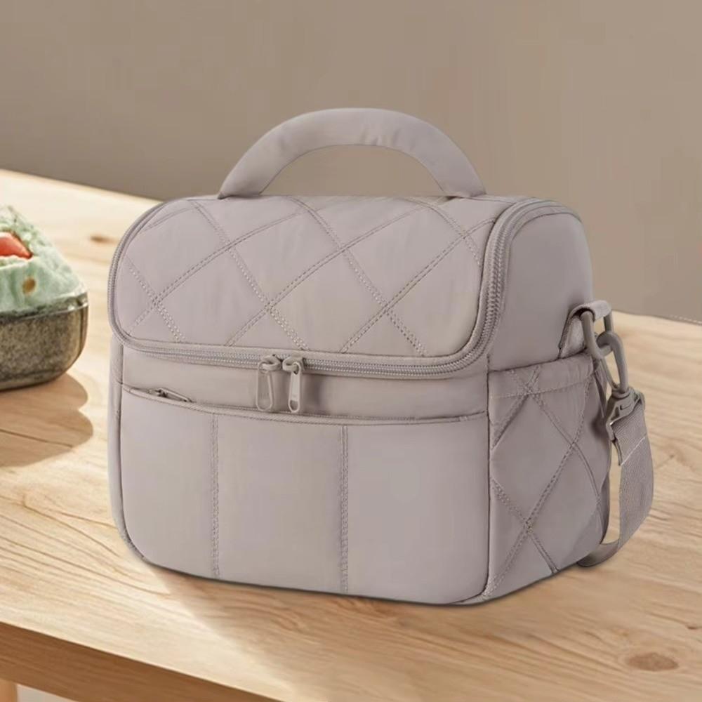 Detachable Strap Lunch Tote Quilted Puffer Lunch Storage Portable Thermal Bag Beach