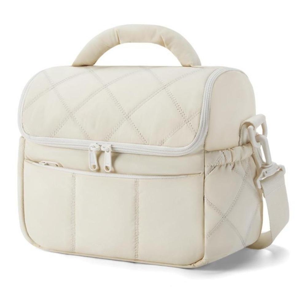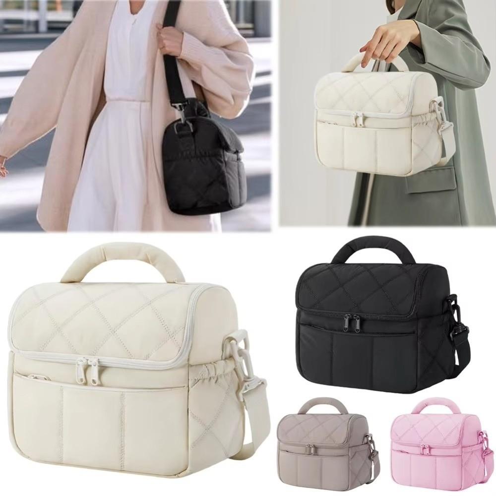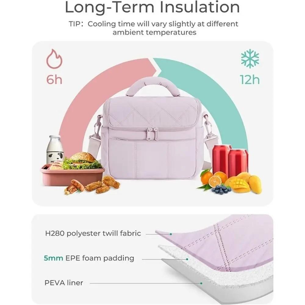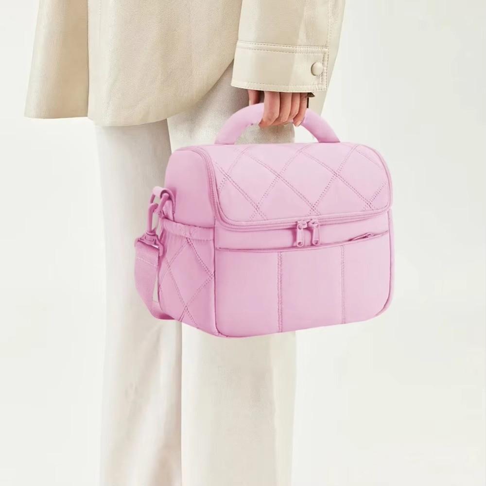 Detachable Strap Lunch Tote Quilted Puffer Lunch Storage Portable Thermal Bag Beach