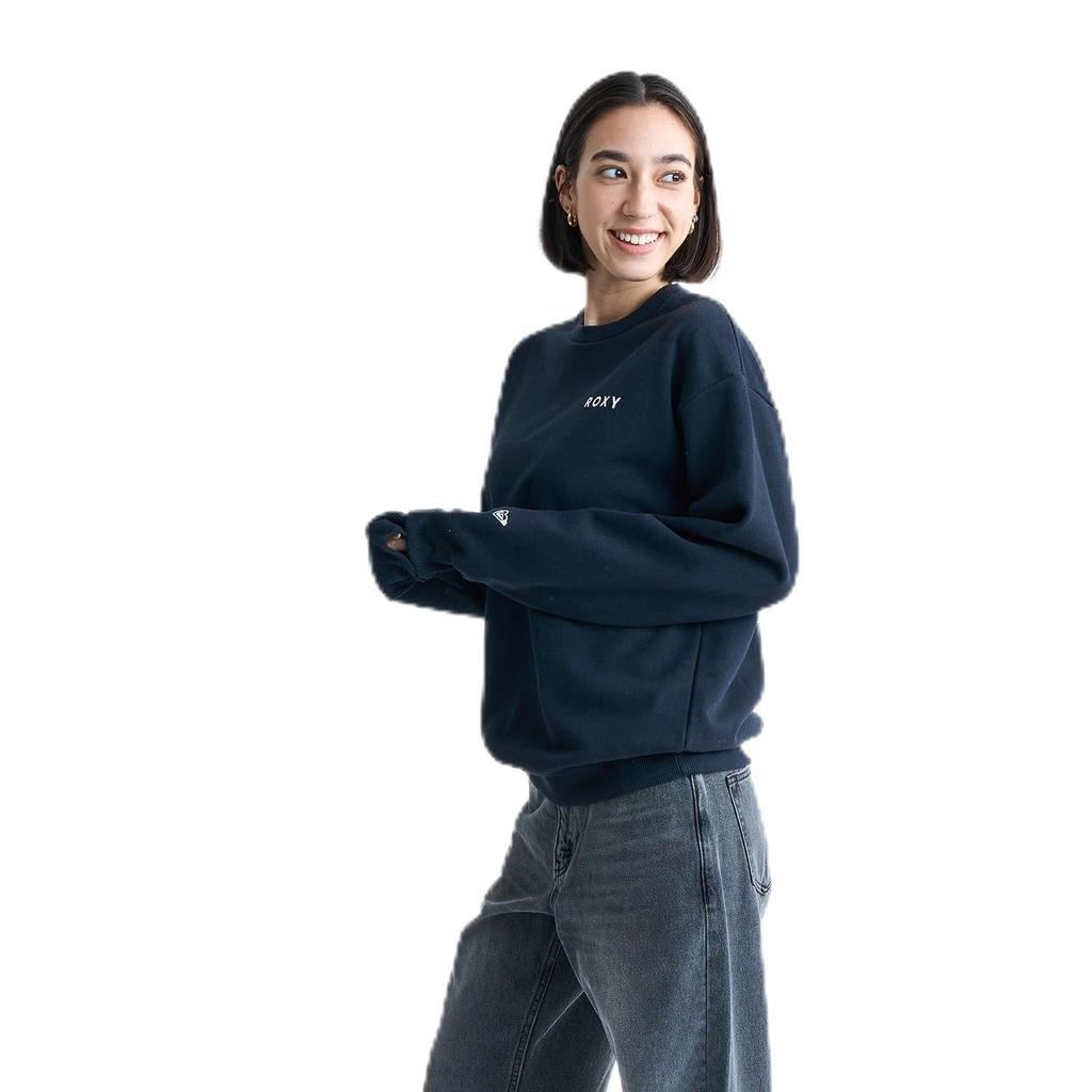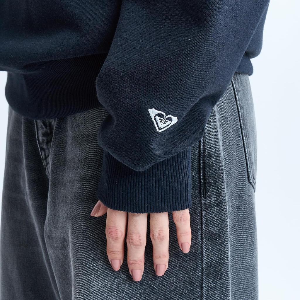 Свитшот Roxy обычного кроя с круглым вырезом и принтом сзади, черный, женский,