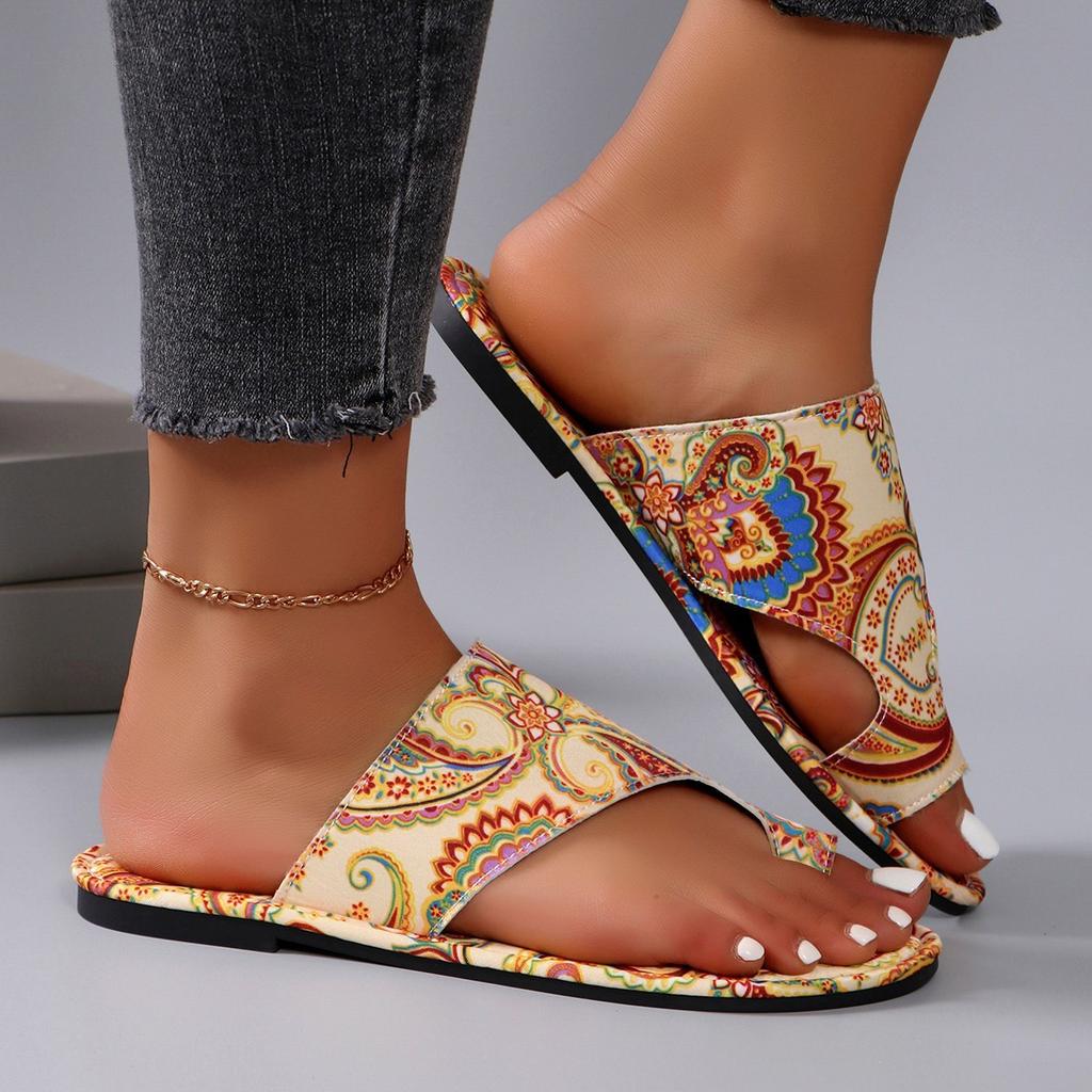 Большой размер летние новые уличные тапочки с закрытым носком принт плоский каблук крутые тапочки