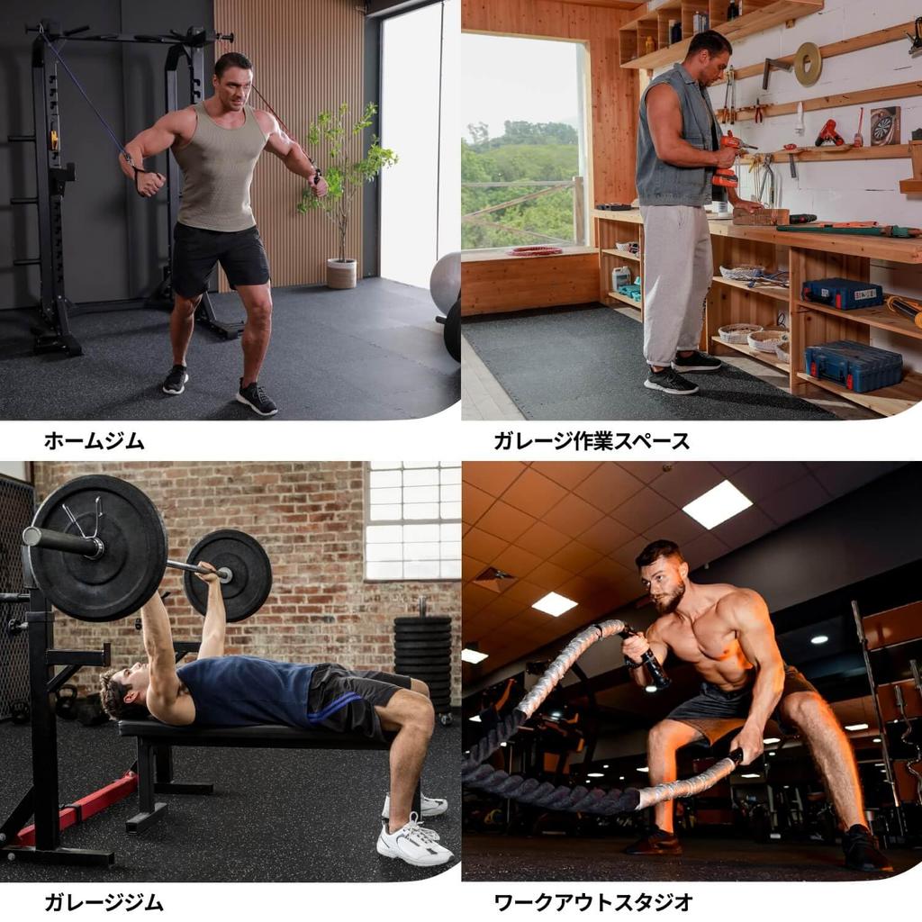 [Многофункциональное использование]: Наши тренировочные коврики изготовлены из высококачественной, экологически чистой резины, что делает их подходящими даже для самых интенсивных тренировок.. Упругие, виброизолирующие коврики обеспечивают надежную поддержку для тяжелого оборудования и защищают полы вашего домашнего спортзала.. Они предотвращают царапины, потертости и вмятины, вызванные гантелями, штангами, фитнес-мячами, скакалками и другим тренировочным оборудованием.. Они также идеально подходят для защиты полов в спортзалах, под оборудованием, на рабочих местах, в подвалах и даже на открытом воздухе.
