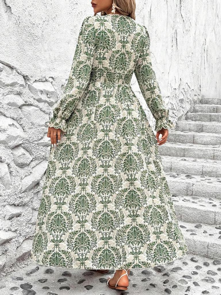 Женское платье с принтом, V-образным вырезом и длинным рукавом, осень 2024