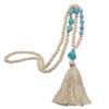 Ожерелье из деревянных бусин в богемном стиле ручной работы с подвеской в виде символа мира и кисточкой
