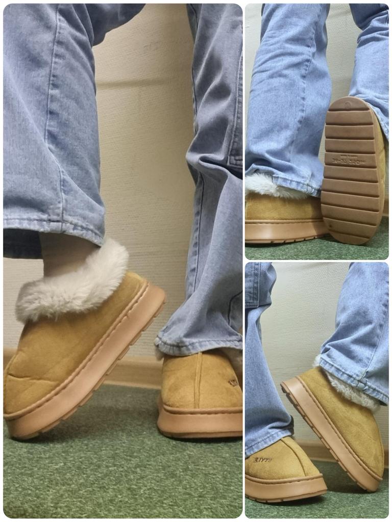 Хорошая альтернатива знаменитым UGG Короткие угги с мехом - тренд уже не первый сезон. Длинные уже и не носят, ну может только в тех регионах, где зимой очень холодно. Свои рыжие я заказывала уже год назад и с удовольствием относила весь осенне-зимне-весенний сезон на даче. По просьбе соседки заказала такие же только серого цвета. Ботиночки из искусственной замши (обязательно требуется водоотталкивающая пропитка), внутри утеплённые искусственным мехом, по верхнему краю отделаны натуральным кроличьим мехом. Подошва резиновая, плоская, высокая, упругая, но гибкая. Стелька тоже меховая, удобная, но она пришита, поэтому, когда вытрется, заменить её не получится, только вставлять вторую, что уменьшит длину на пол размера. Прошиты аккуратно, выглядят современно и стильно. Очень мягкие и тёплые внутри. Мои на длину стопы 22,5 см заказала размер 36-37. Со второй стелькой и тёплыми носками мне подошли идеально, с ноги не сваливаются, пятка "не гуляет", в носке комфортно, не плотно, и не слишком свободно. Для соседки - на стопу 24,5 см заказан размер 40-41. Рекомендую с удовольствием! Личный промокод на скидку 5% на любые товары joom: 1YD24H2FGO. Приглашаю в мой телеграм-канал followmekanal.