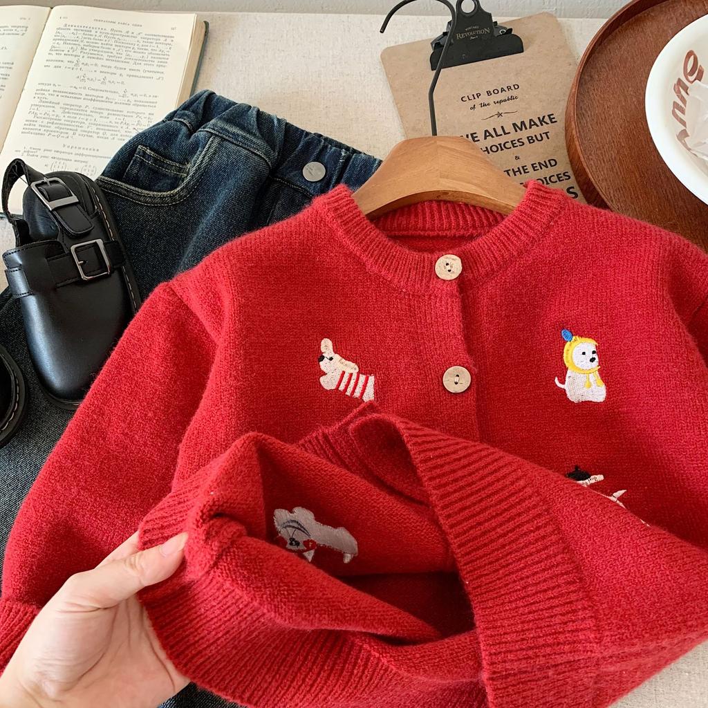 Детский свитер Зимний новый продукт Мужской и женский Праздничный вязаный свитер Кардиган с вышивкой собаки