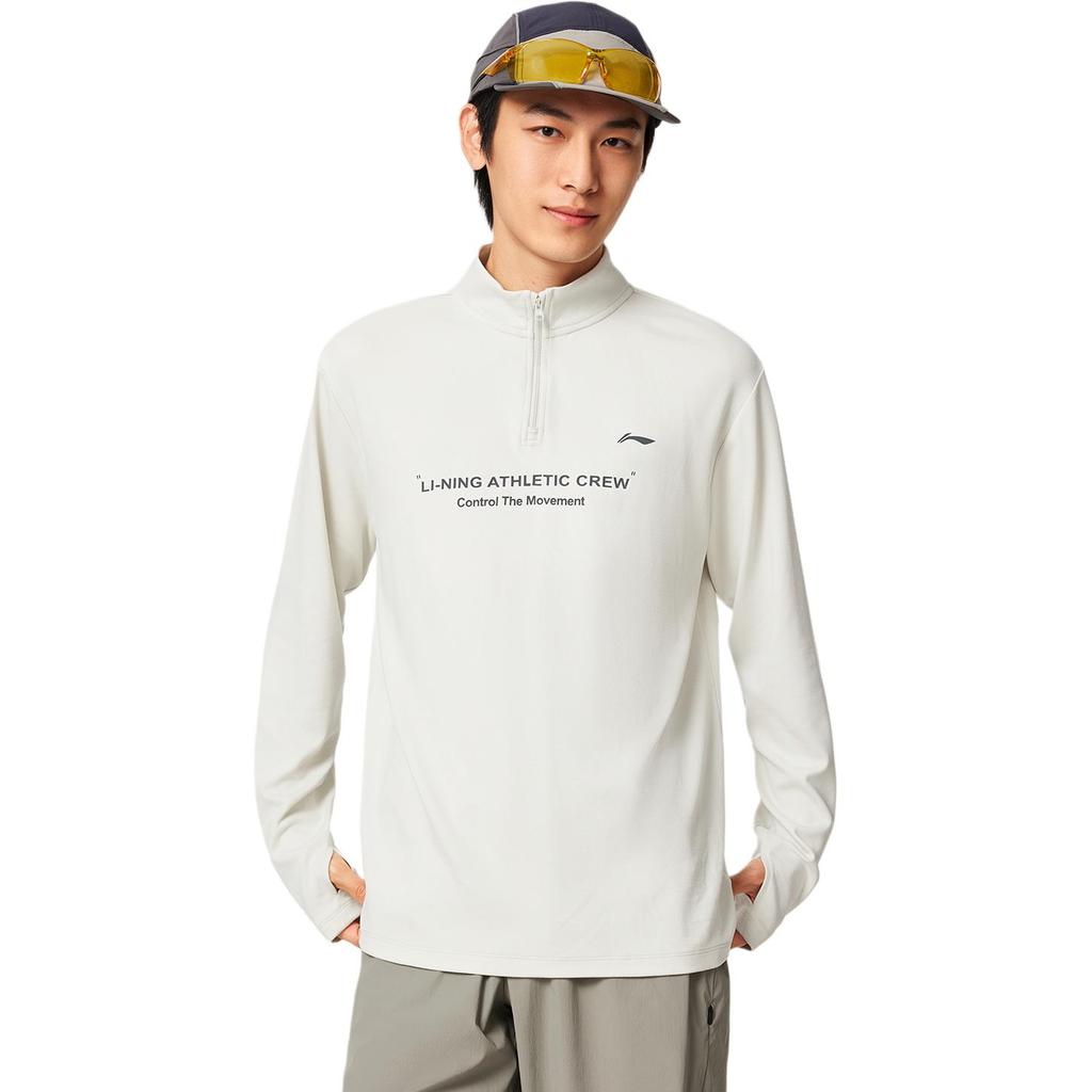 Li-Ning Удобная Повседневная Минималистичная Футболка с Воротником-стойкой и Принтом Букв, Дышащая Спортивная с Длинным Рукавом, Мужской Топ ATLV273-1