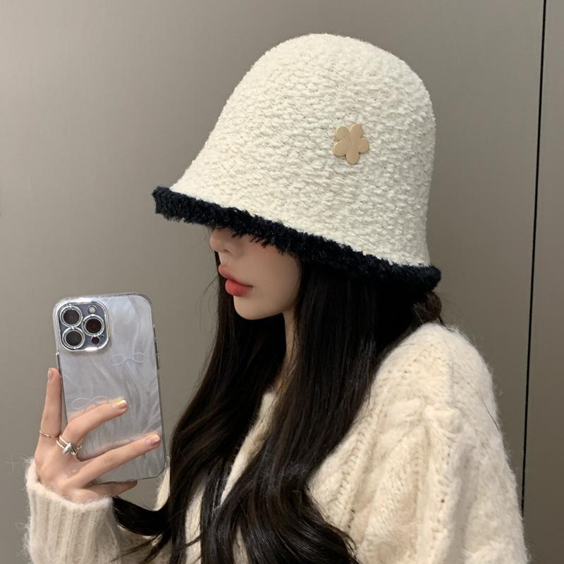 Новые осенне-зимние женские шляпы однотонные и универсальные шляпы-панамы из искусственного овечьего бархата, теплые зимние шляпы с пряжкой для большой головы, модные