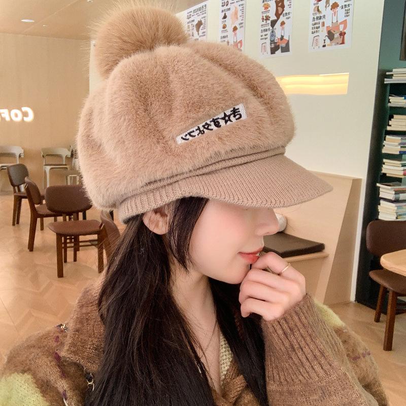 Корейская новая осенне-зимняя шапка для женщин, модная и универсальная, из кроличьего меха, теплая бейсболка, милая зимняя шапка с меховым помпоном, теплая