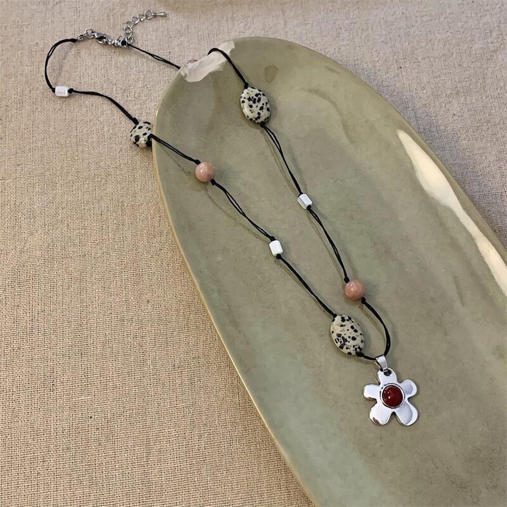 Женское богемное винтажное ожерелье из бусин с цветочной нитью