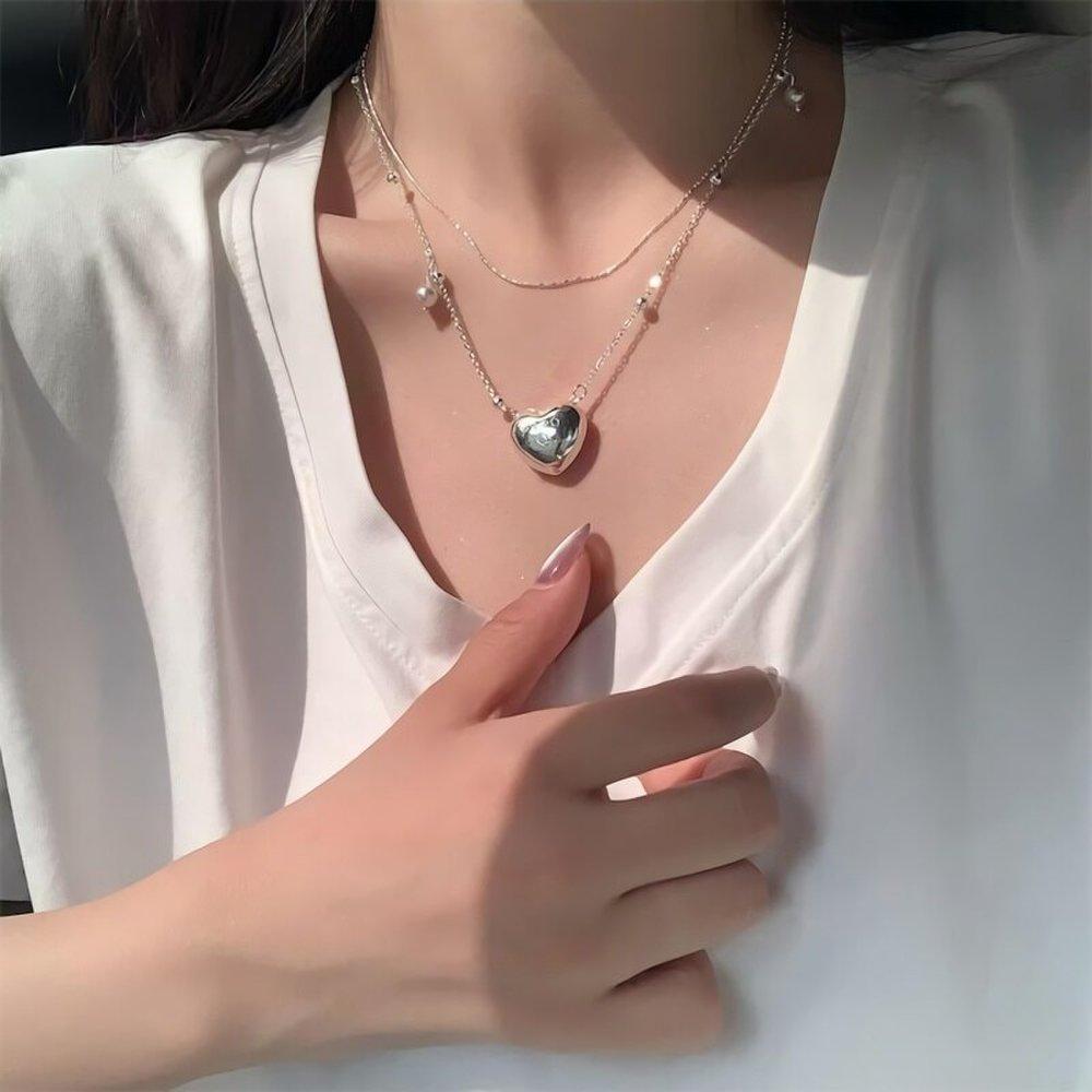Женское многослойное ожерелье из серебра с жемчугом, цветами и сердечками