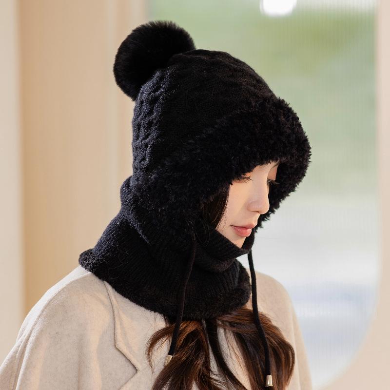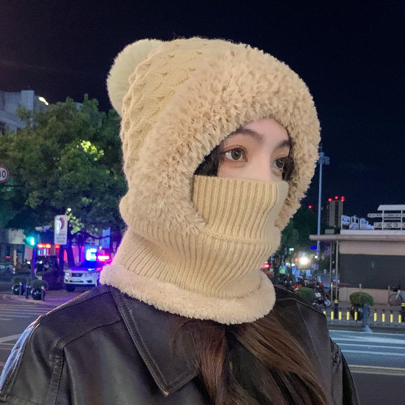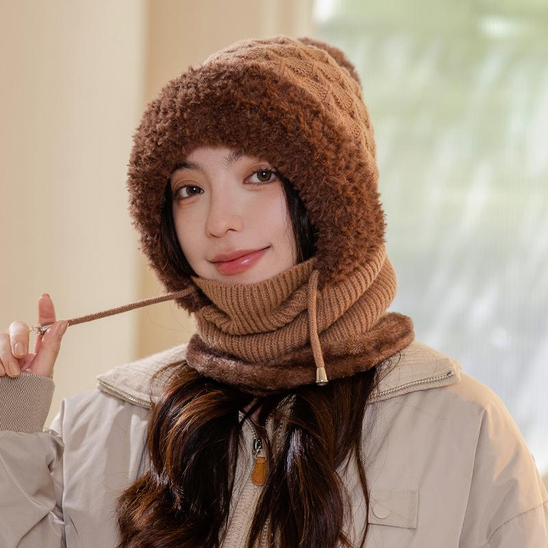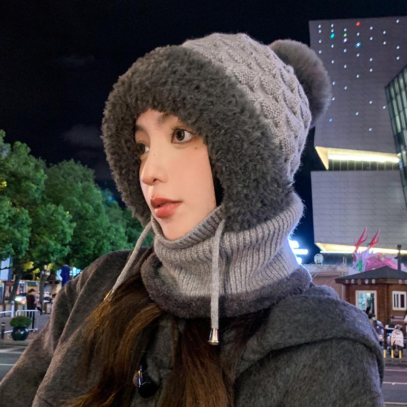 Новые осенне-зимние шапки для женщин, вязаные шерстяные шарфы-интегрированные шапки для зимы, теплые шапки с плюшевой подкладкой для защиты головы от холода, шапки с защитой ушей