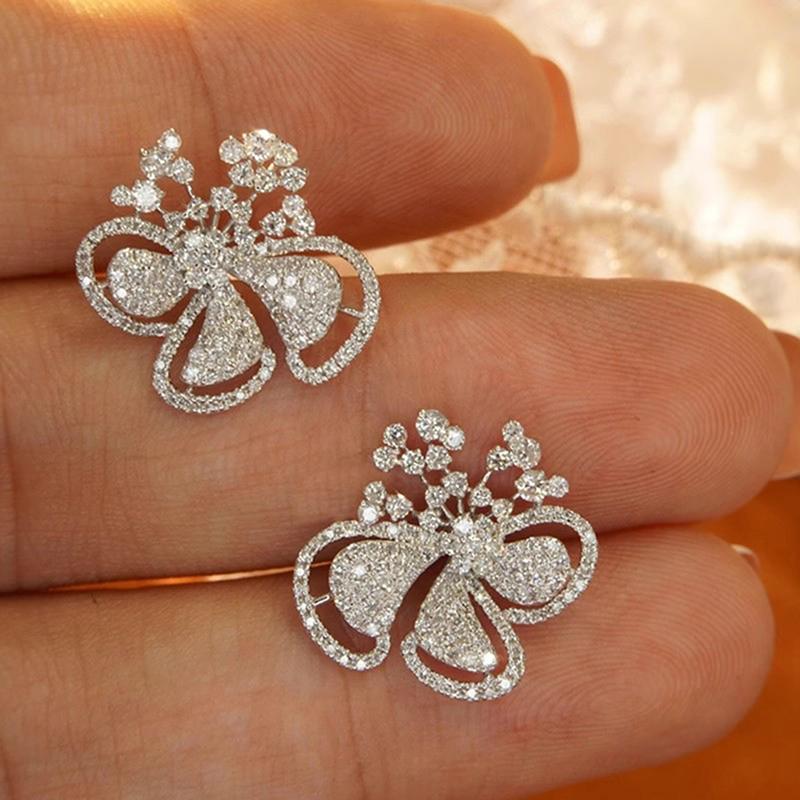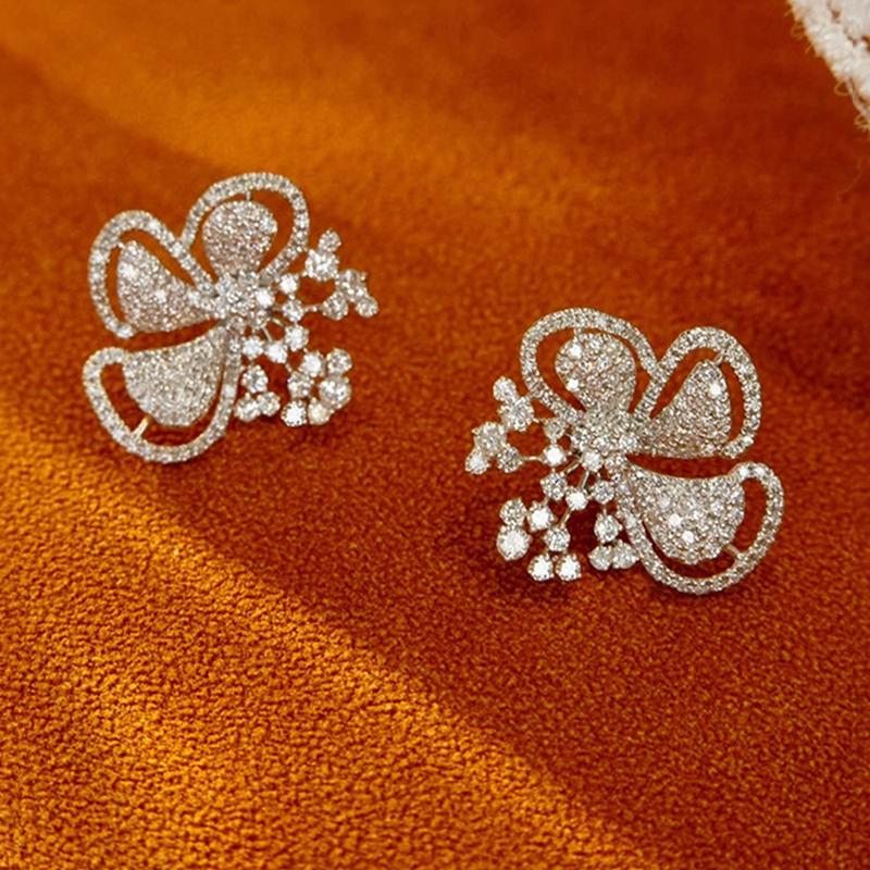Блестящие серьги-пусеты в виде цветка Женские эстетичные аксессуары для помолвки Серебристого цвета Сияющие циркониевые украшения для свадьбы