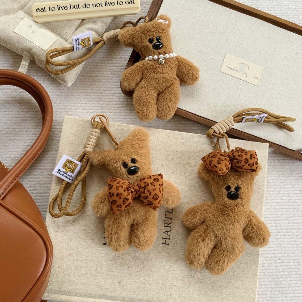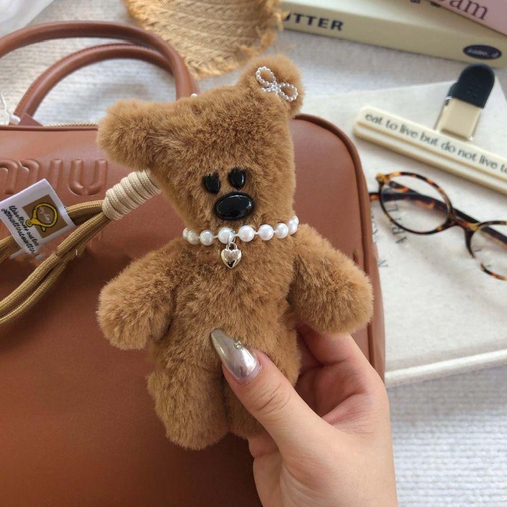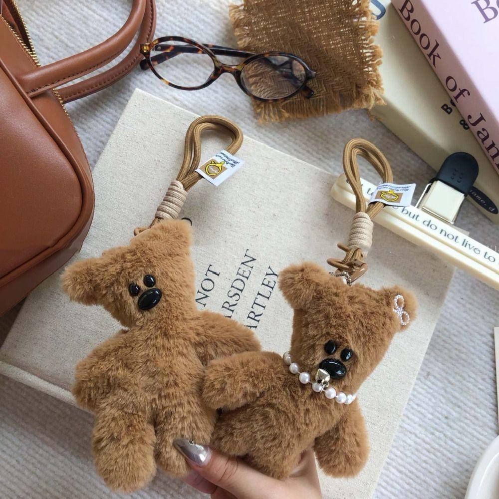 Кавайный кулон в виде медведя, жемчужные плюшевые куклы, милый брелок для ключей автомобиля, подарки