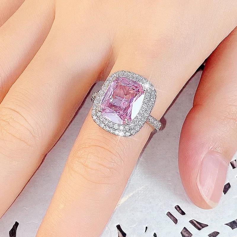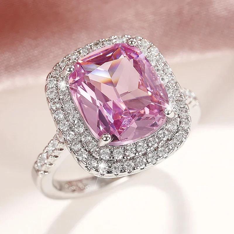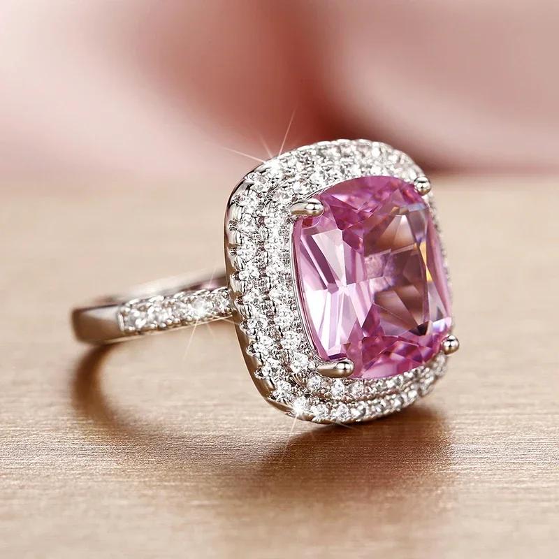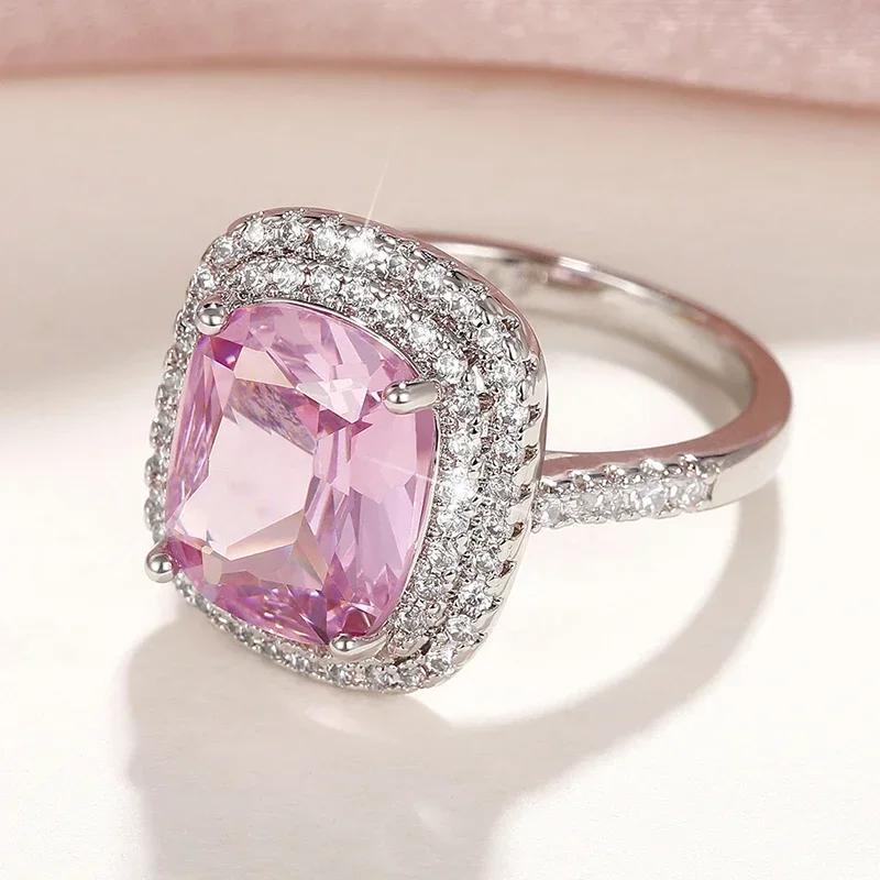 Эстетичные розовые кольца для помолвки с кубическим цирконием для женщин, роскошное серебристое кольцо, темпераментные, милые женские украшения для вечеринок