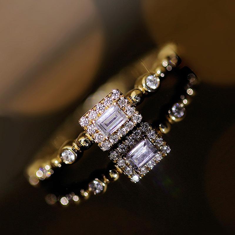 Прямоугольные кольца из кубического циркония золотого цвета Изысканные свадебные аксессуары для женщин Новые дизайнерские эффектные украшения — купить товар онлайн с бесплатной доставкой по всему миру!